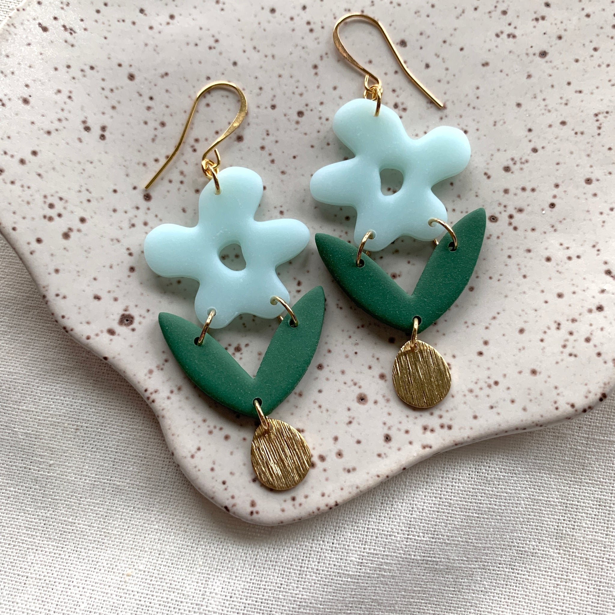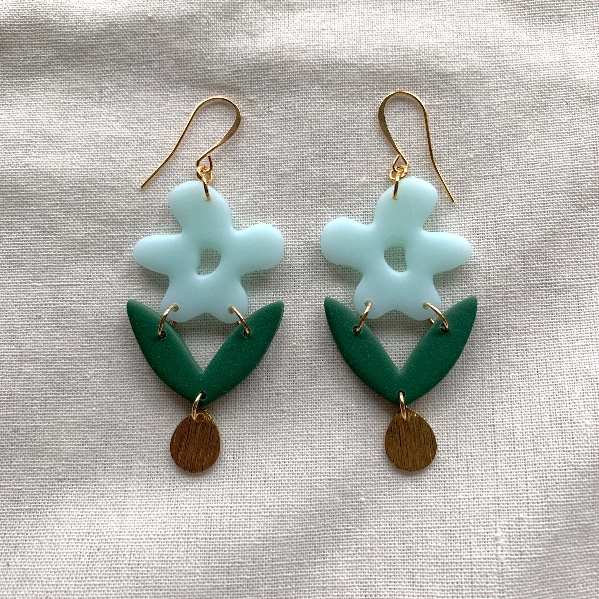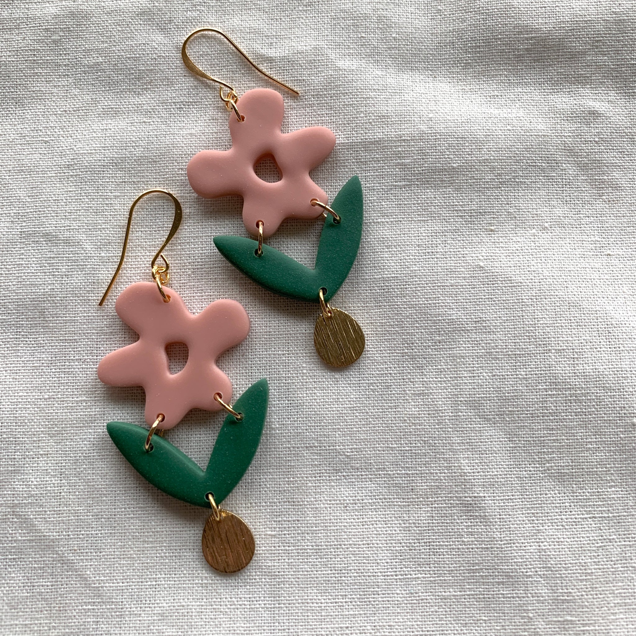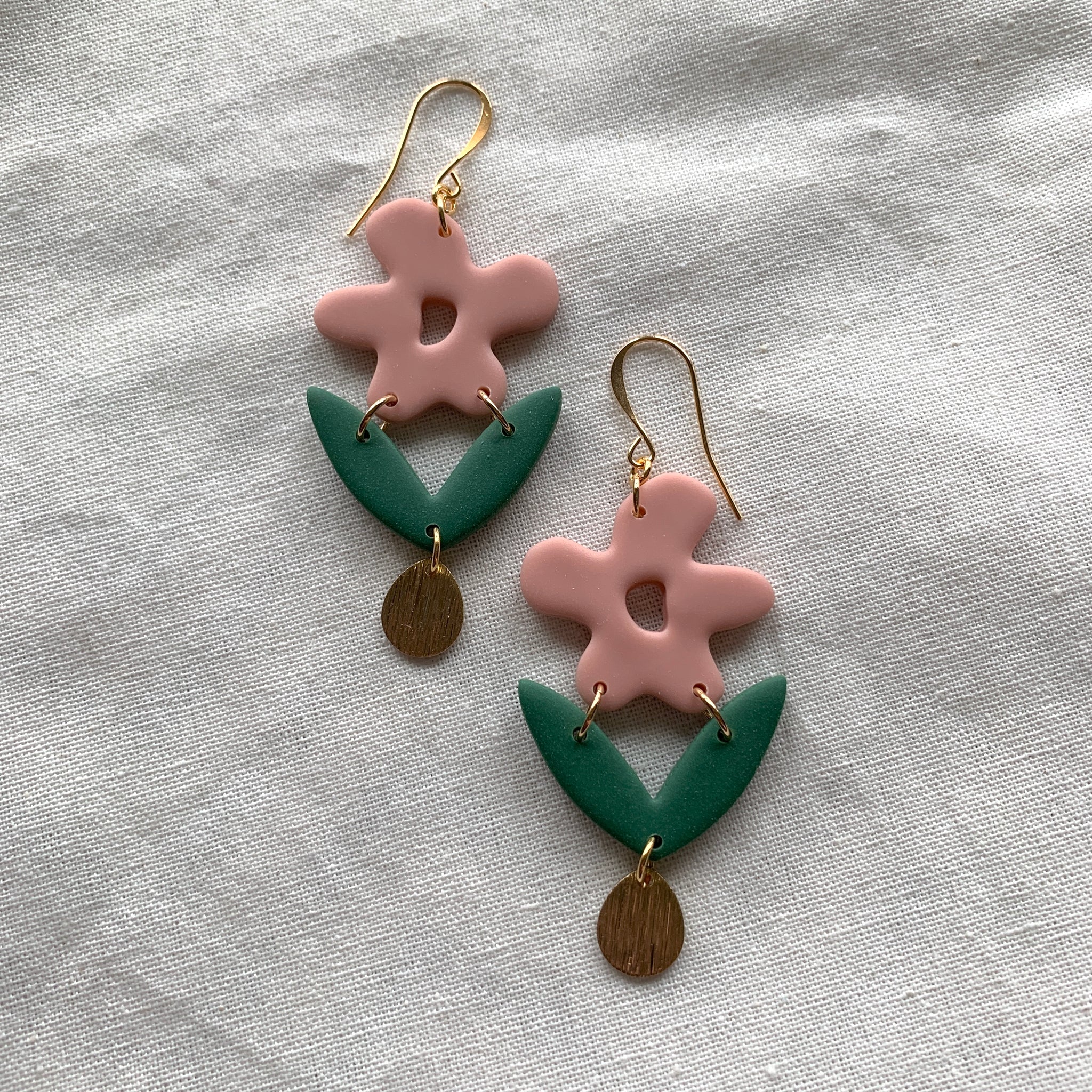 Earrings are handmade in very small batches of polymer clay by Dylan in her home studio. Every piece is cut, sanded, and assembled by hand. They are lightweight and durable, but please handle with care. Due to the nature of handmade pieces, there may be small imperfections; no two pieces are 100% alike! Also please note the color of earrings may slightly differ due to computer monitor settings.