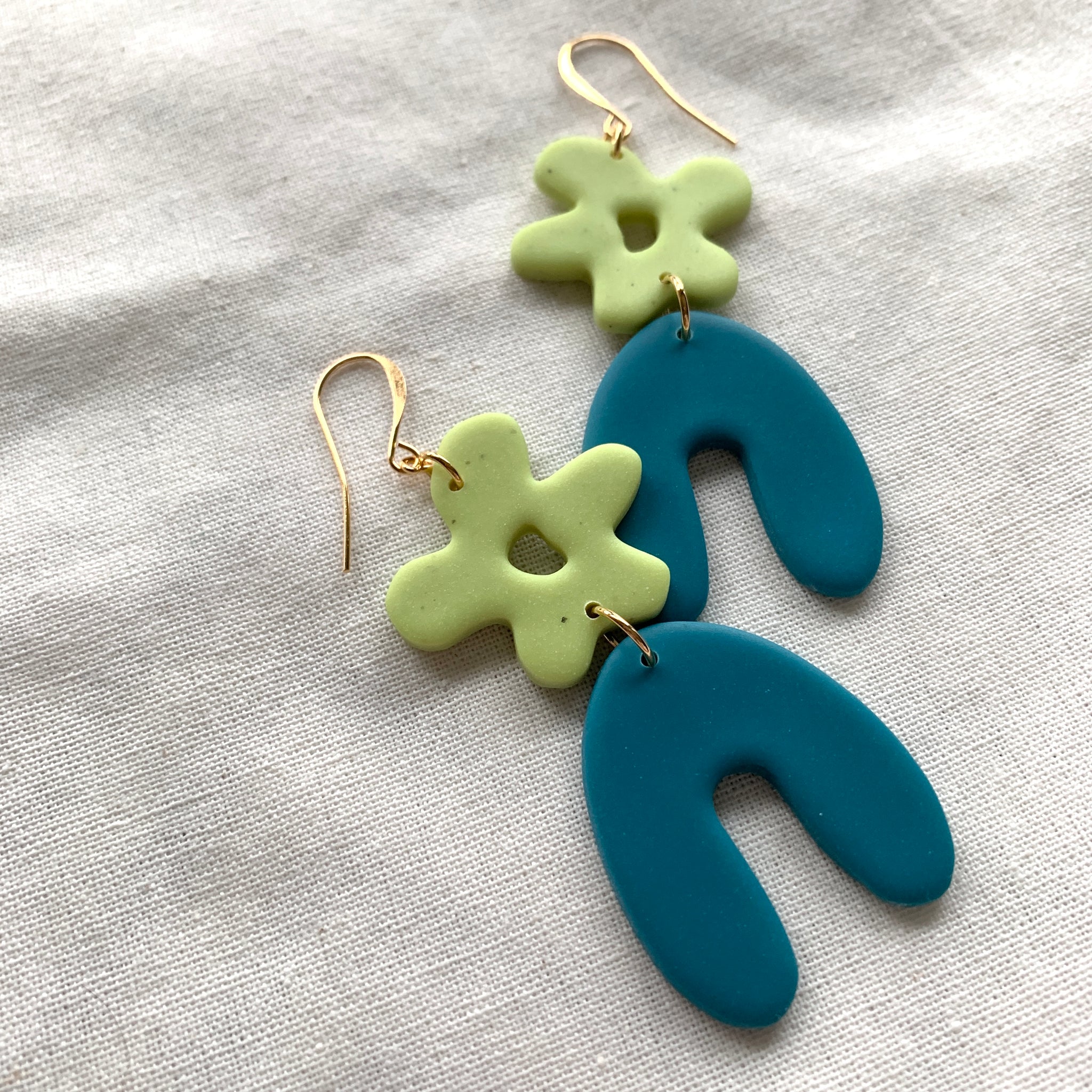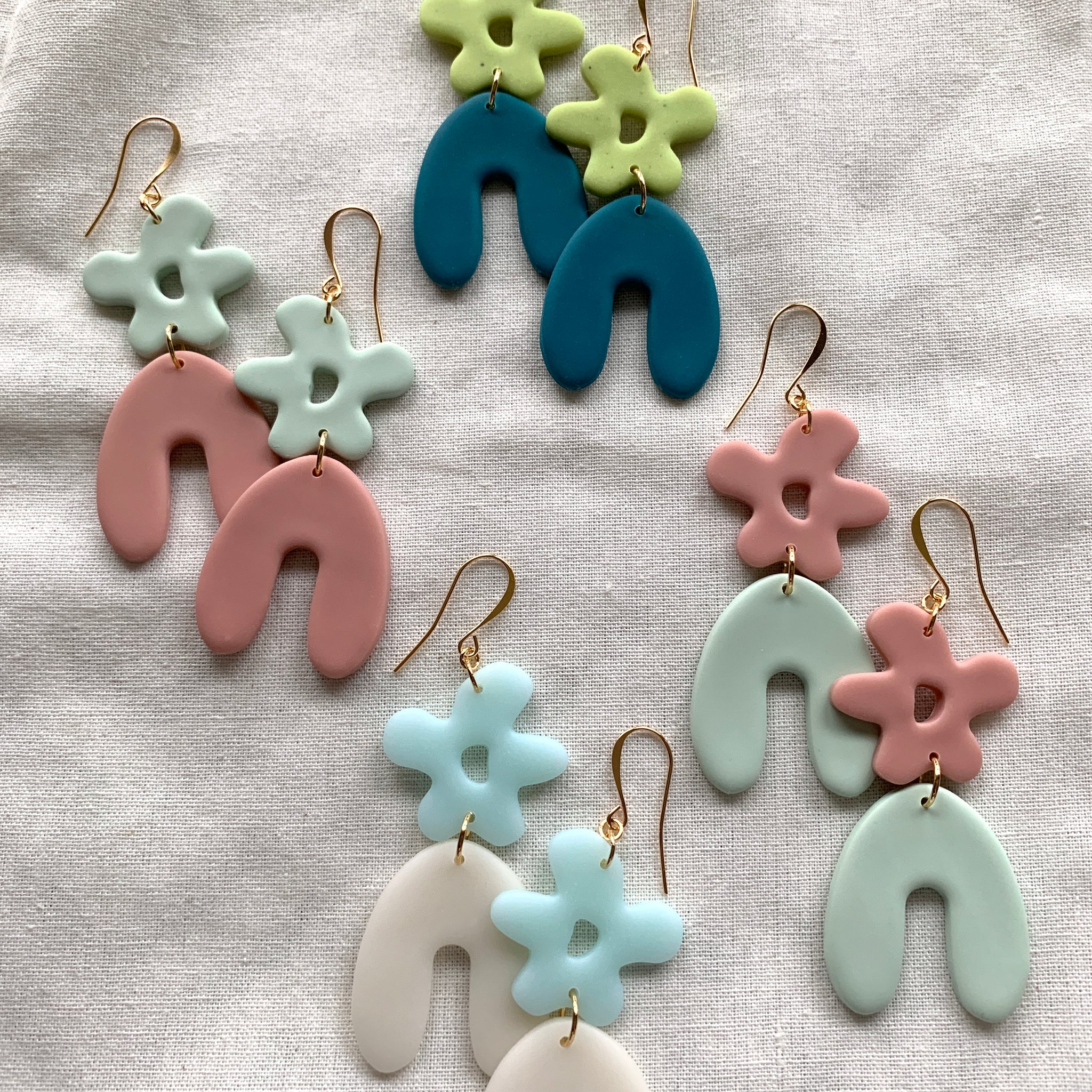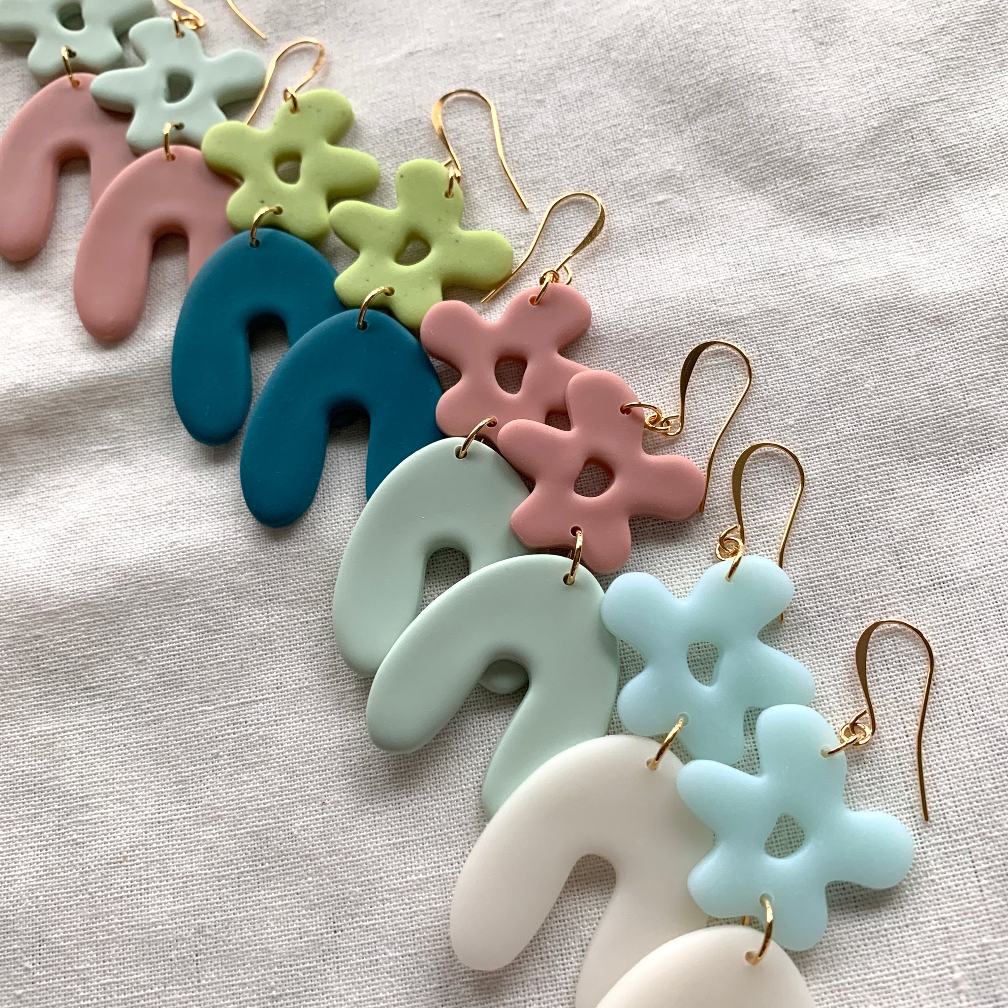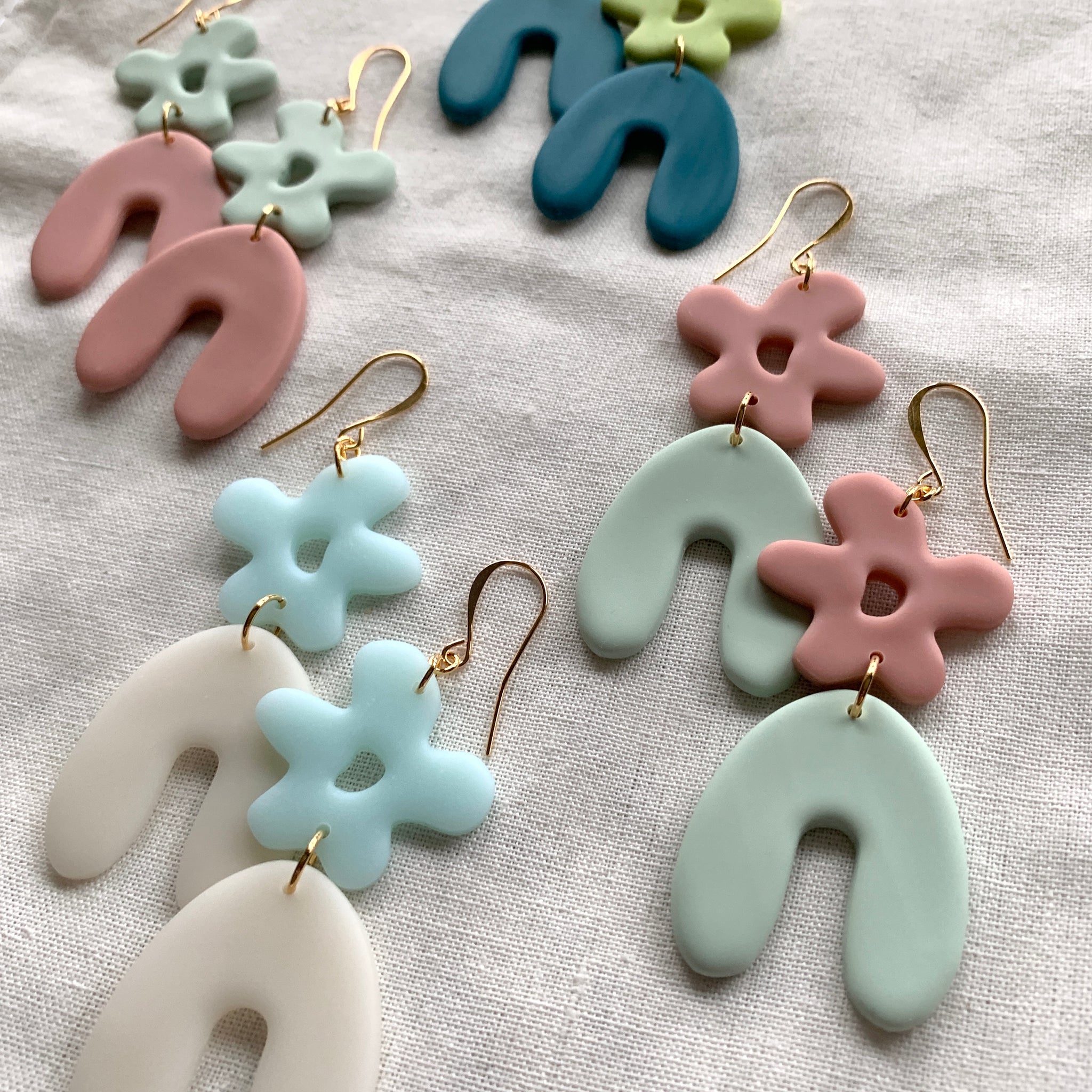 All earrings are handmade in very small batches of polymer clay. They are lightweight, but not as durable as metal or plastic, so please handle with care. Every piece is cut, sanded, buffed, and assembled with love by us. Due to the nature of handmade pieces, there may be slight variations or imperfections; no two pieces are 100% alike! Also please note the color of earrings may slightly differ due to computer monitor settings.