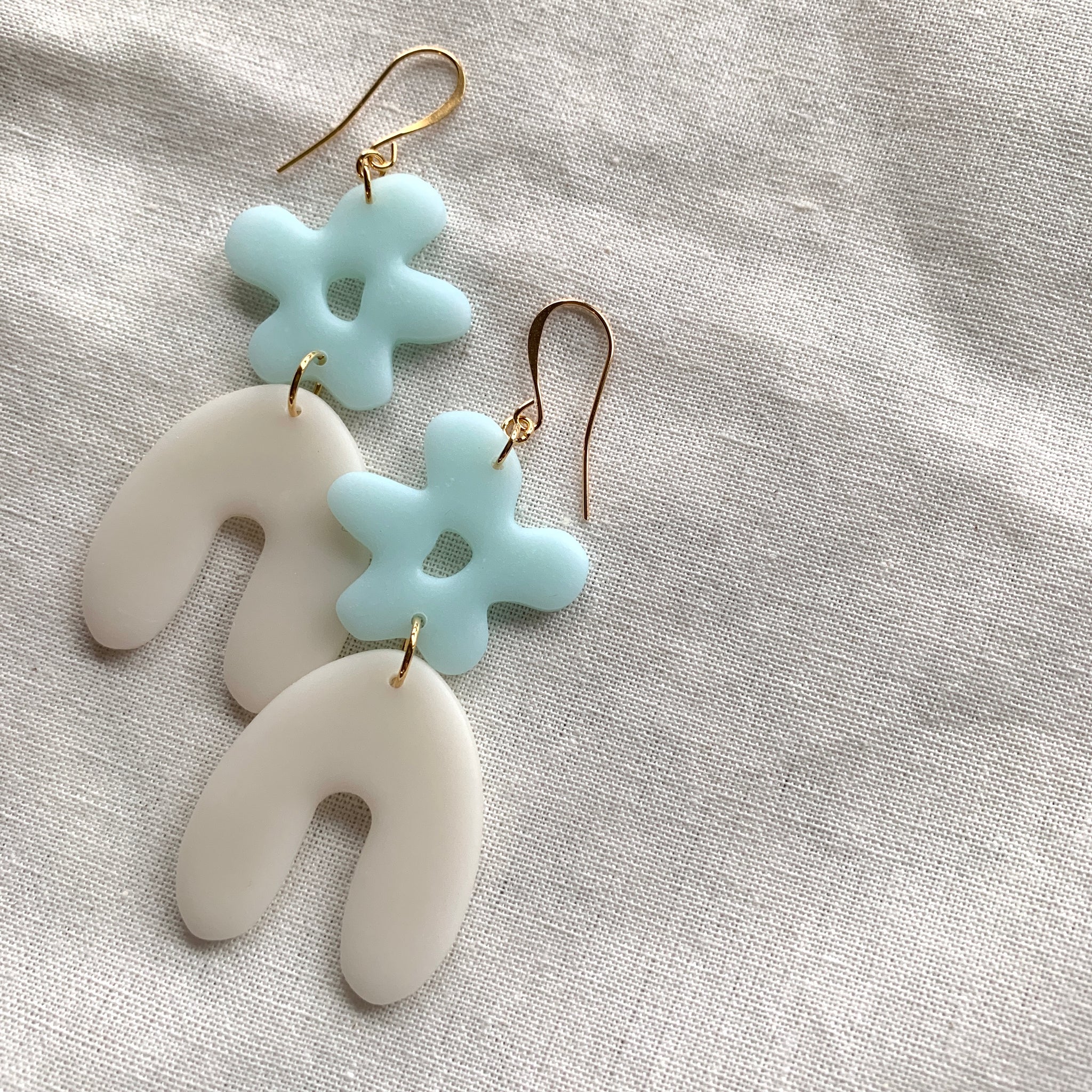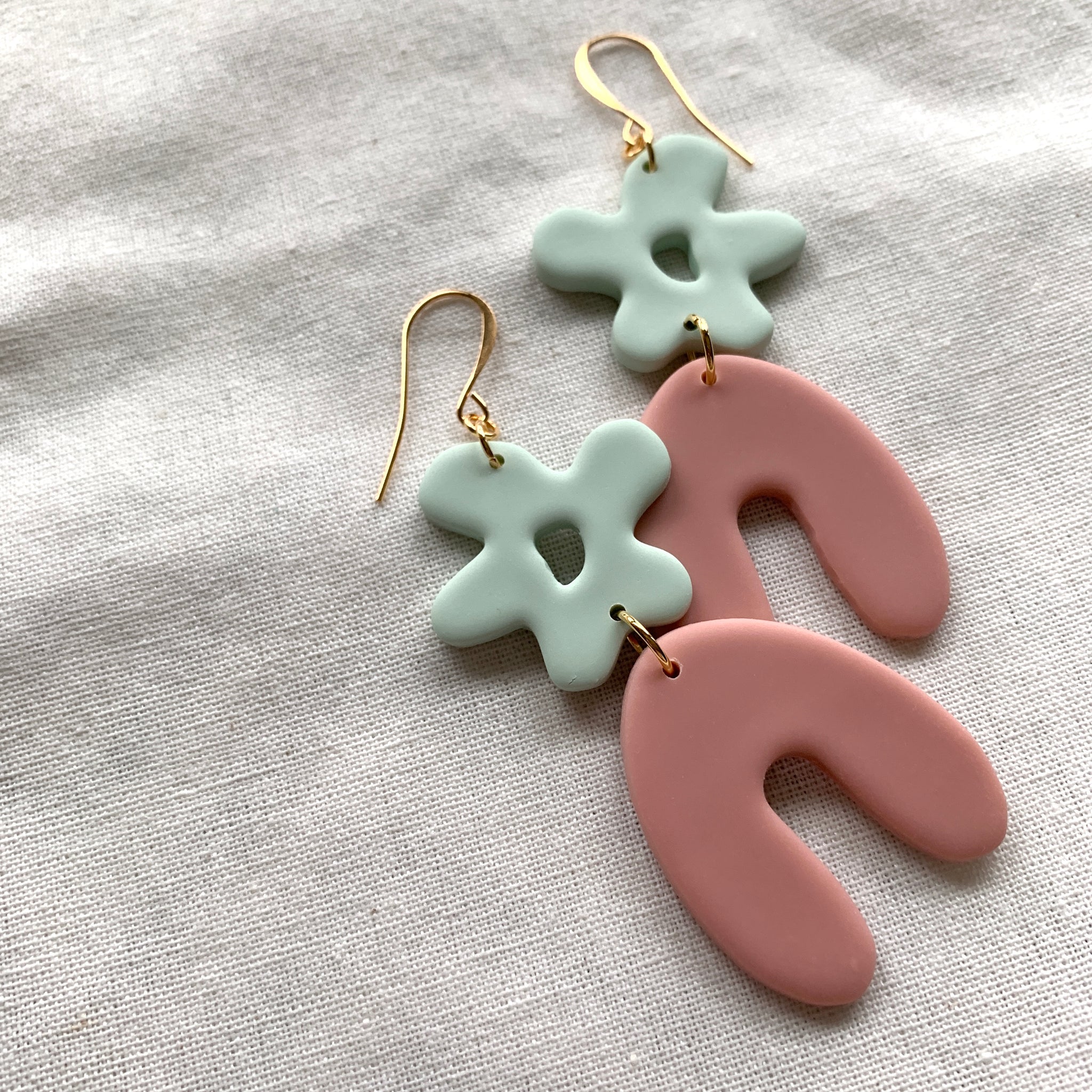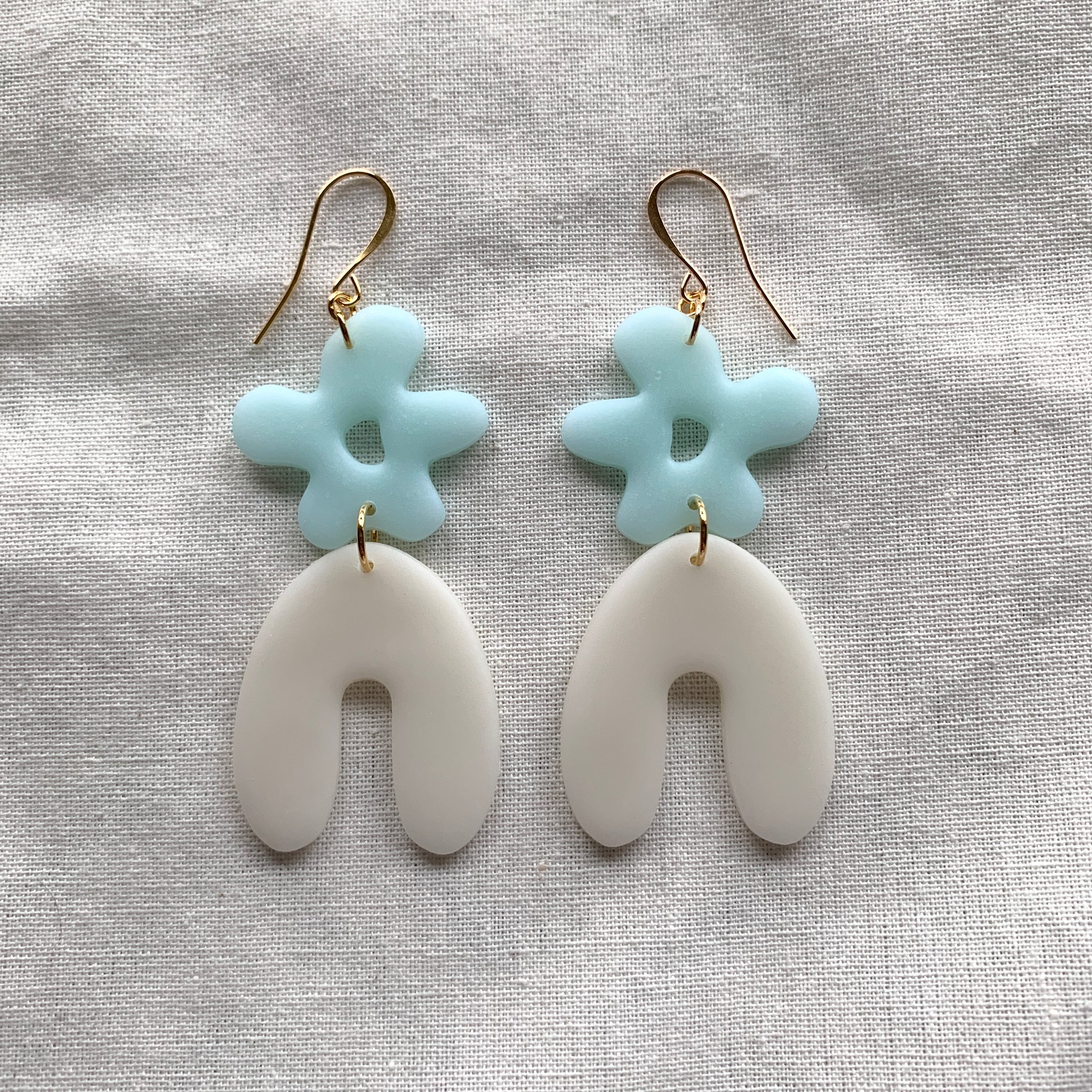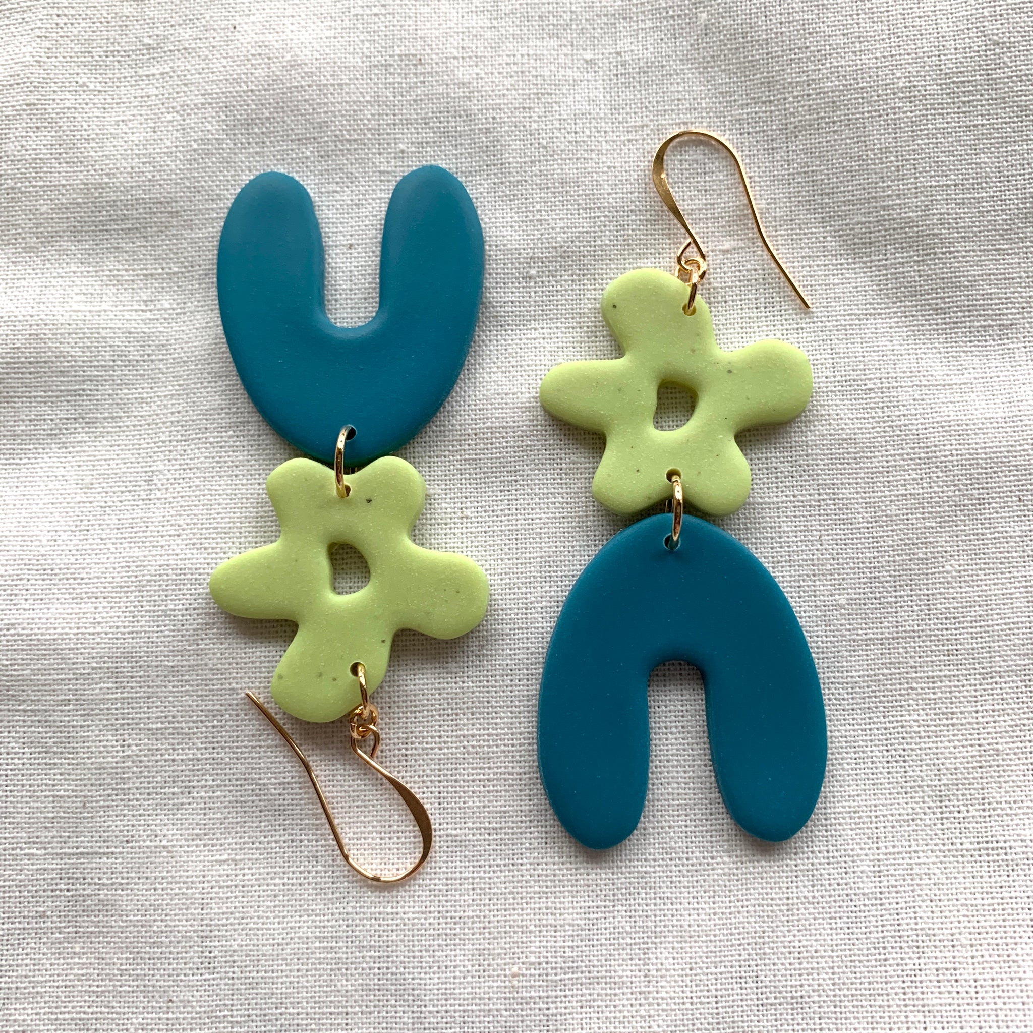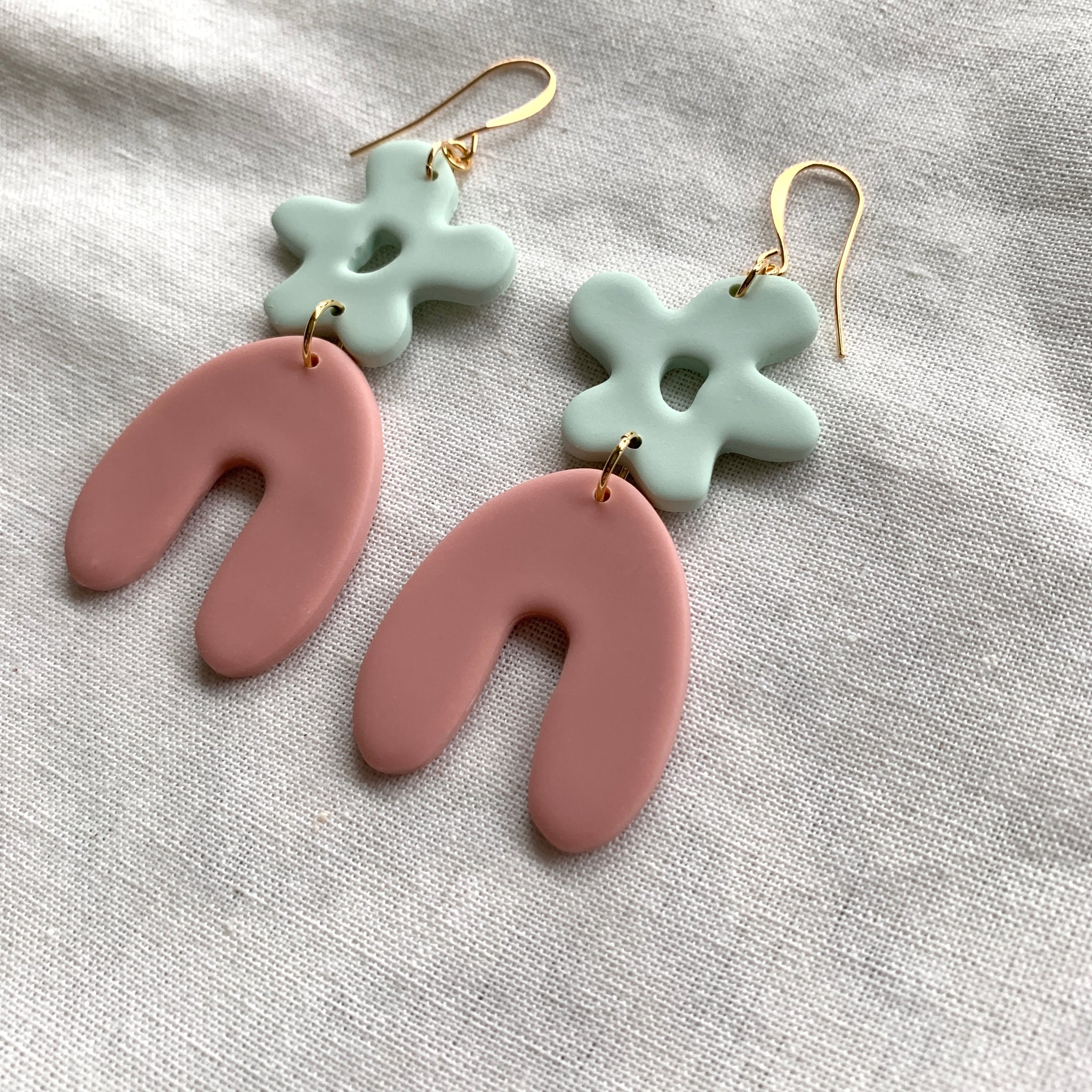 All earrings are handmade in very small batches of polymer clay. They are lightweight, but not as durable as metal or plastic, so please handle with care. Every piece is cut, sanded, buffed, and assembled with love by us. Due to the nature of handmade pieces, there may be slight variations or imperfections; no two pieces are 100% alike! Also please note the color of earrings may slightly differ due to computer monitor settings.