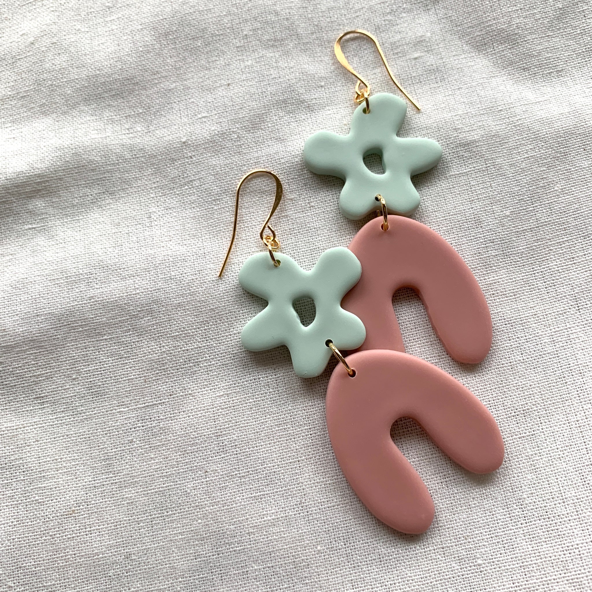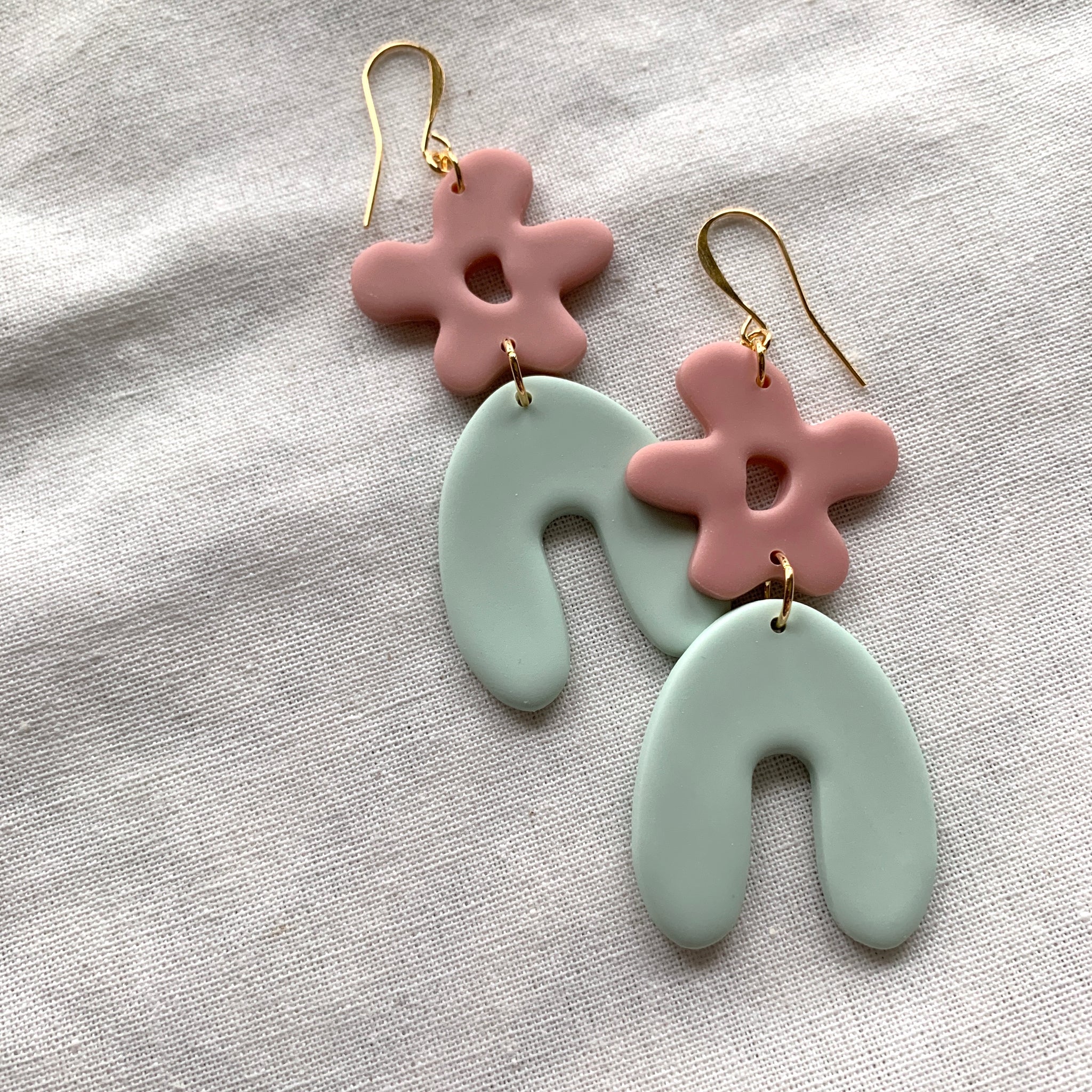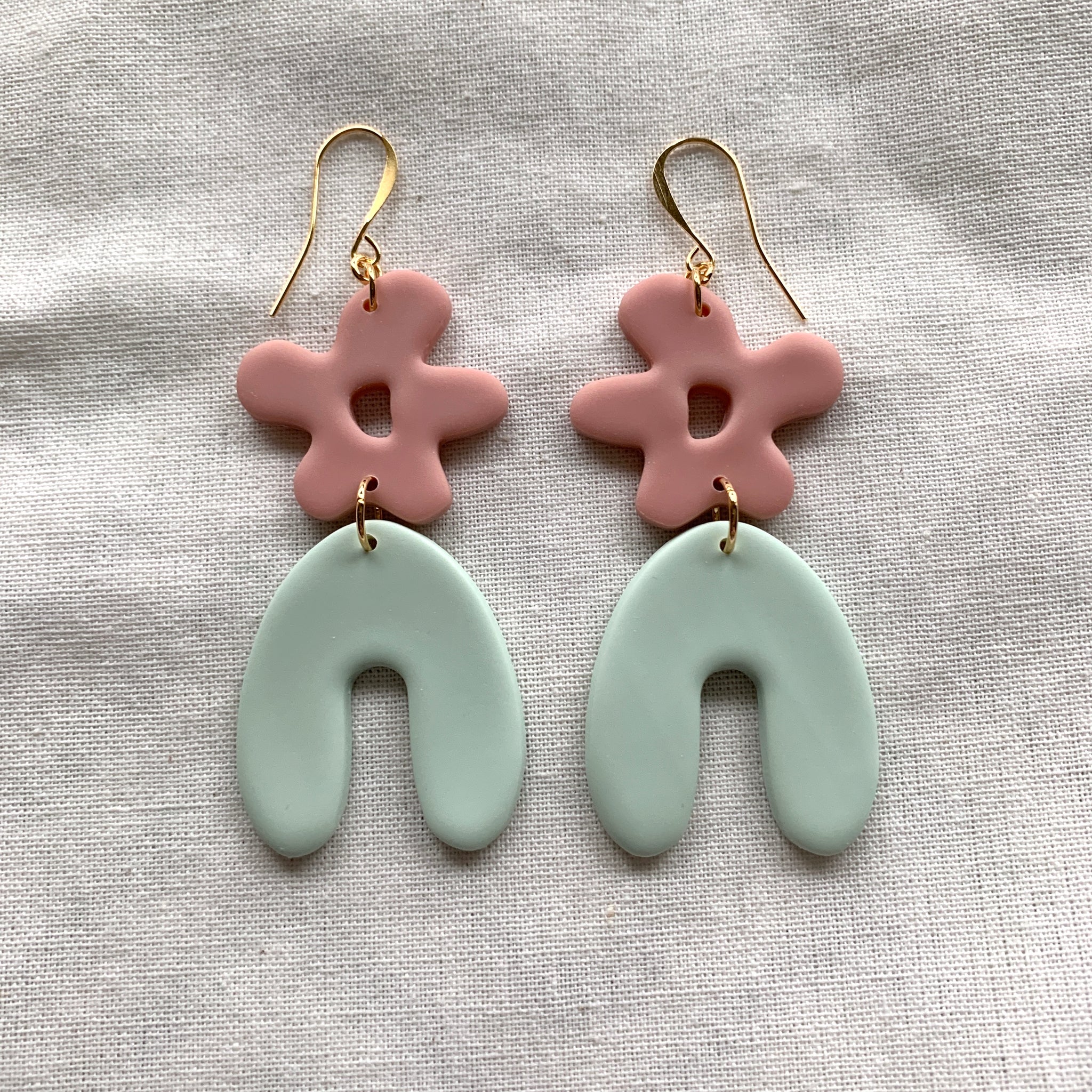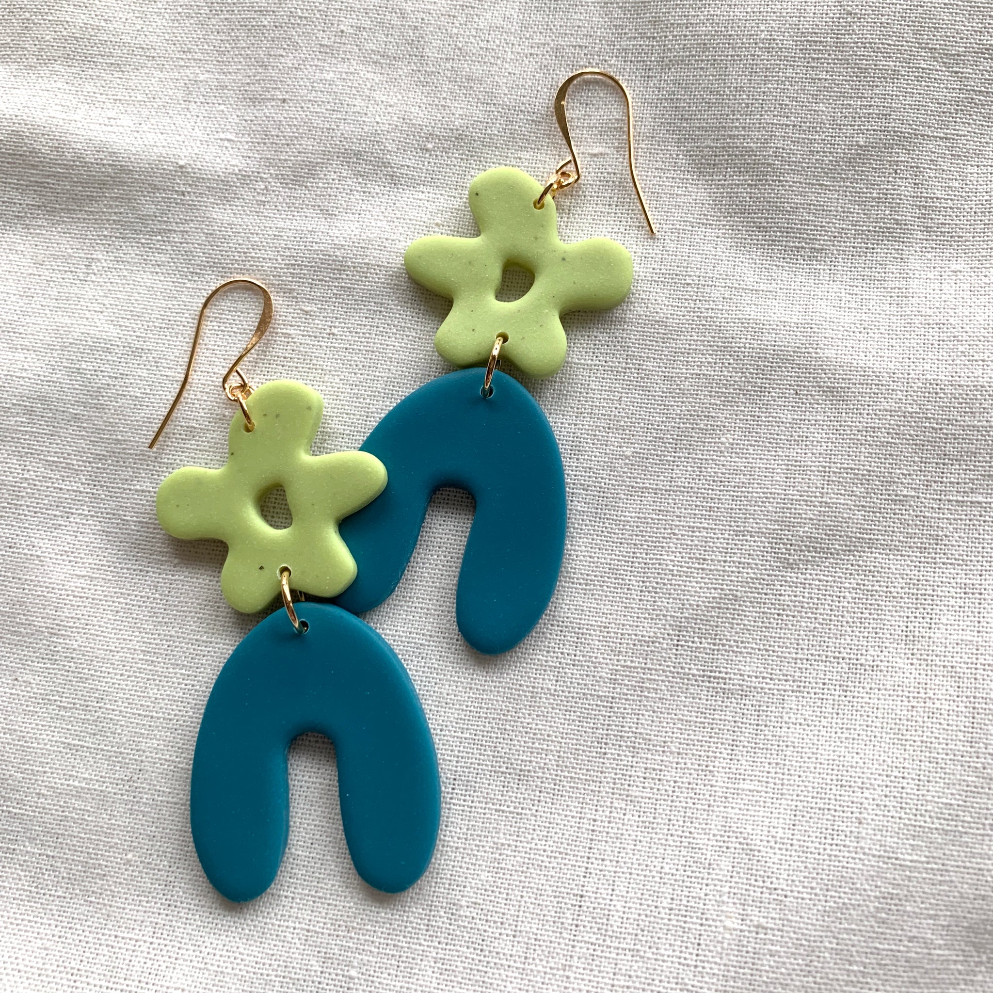 All earrings are handmade in very small batches of polymer clay. They are lightweight, but not as durable as metal or plastic, so please handle with care. Every piece is cut, sanded, buffed, and assembled with love by us. Due to the nature of handmade pieces, there may be slight variations or imperfections; no two pieces are 100% alike! Also please note the color of earrings may slightly differ due to computer monitor settings.