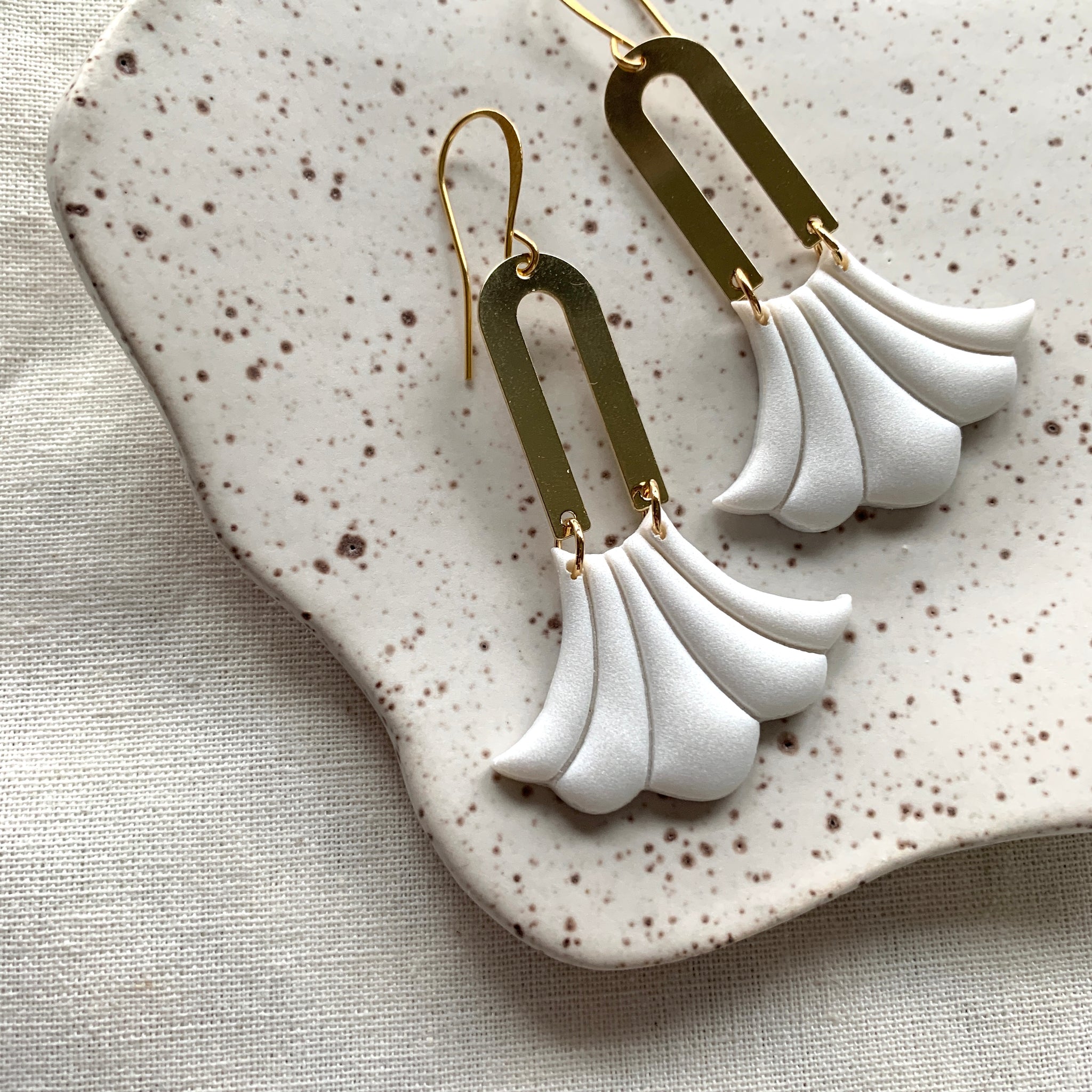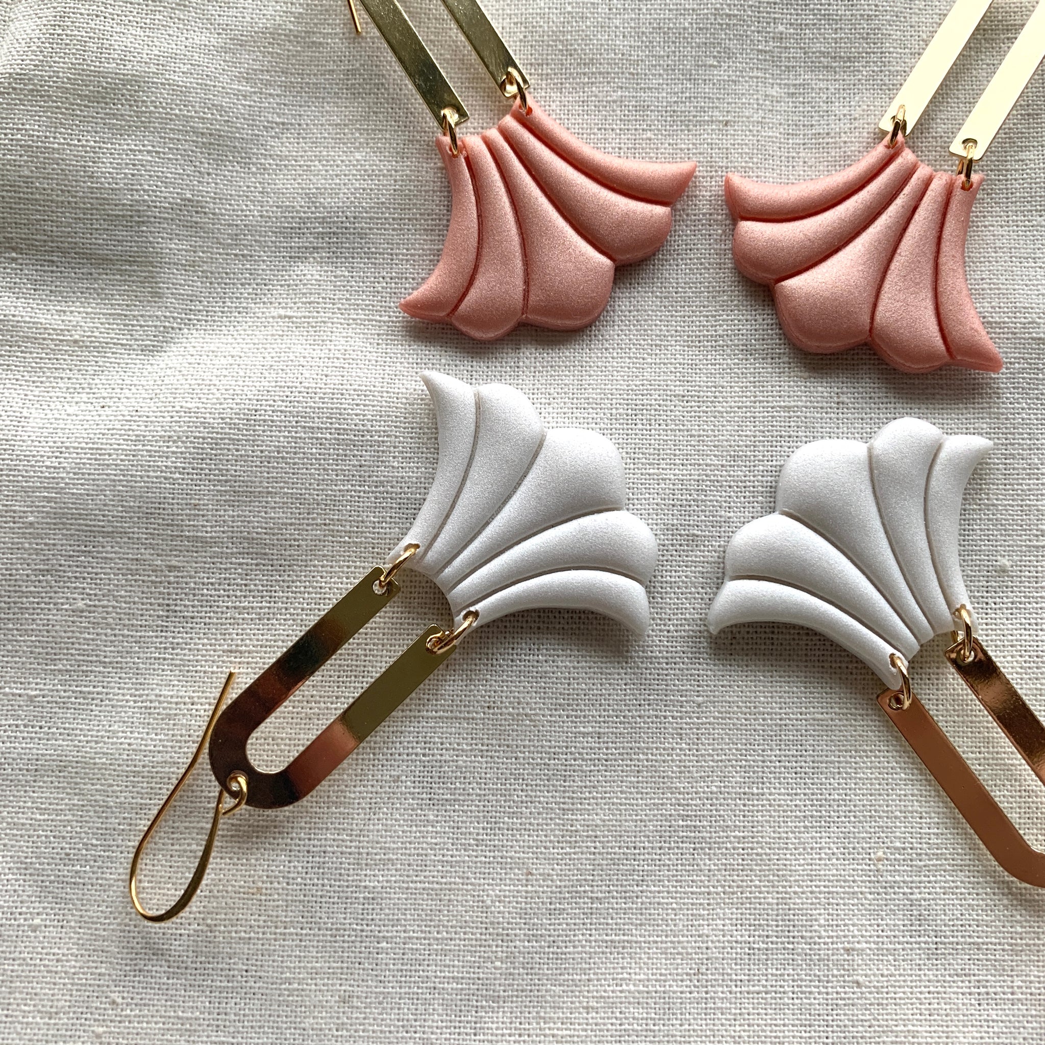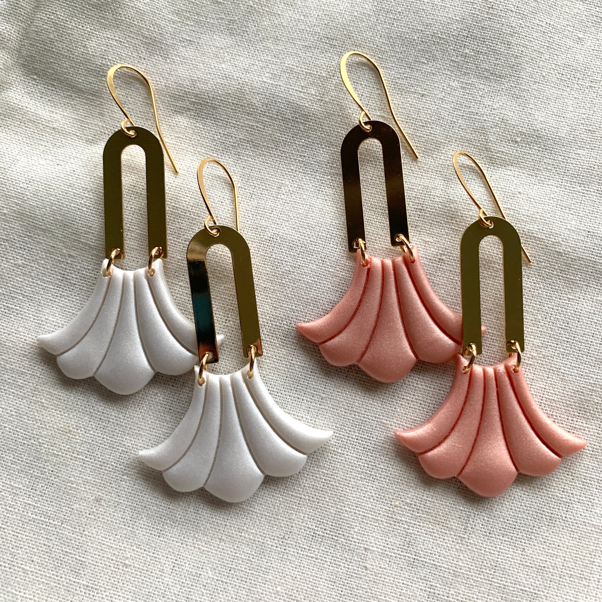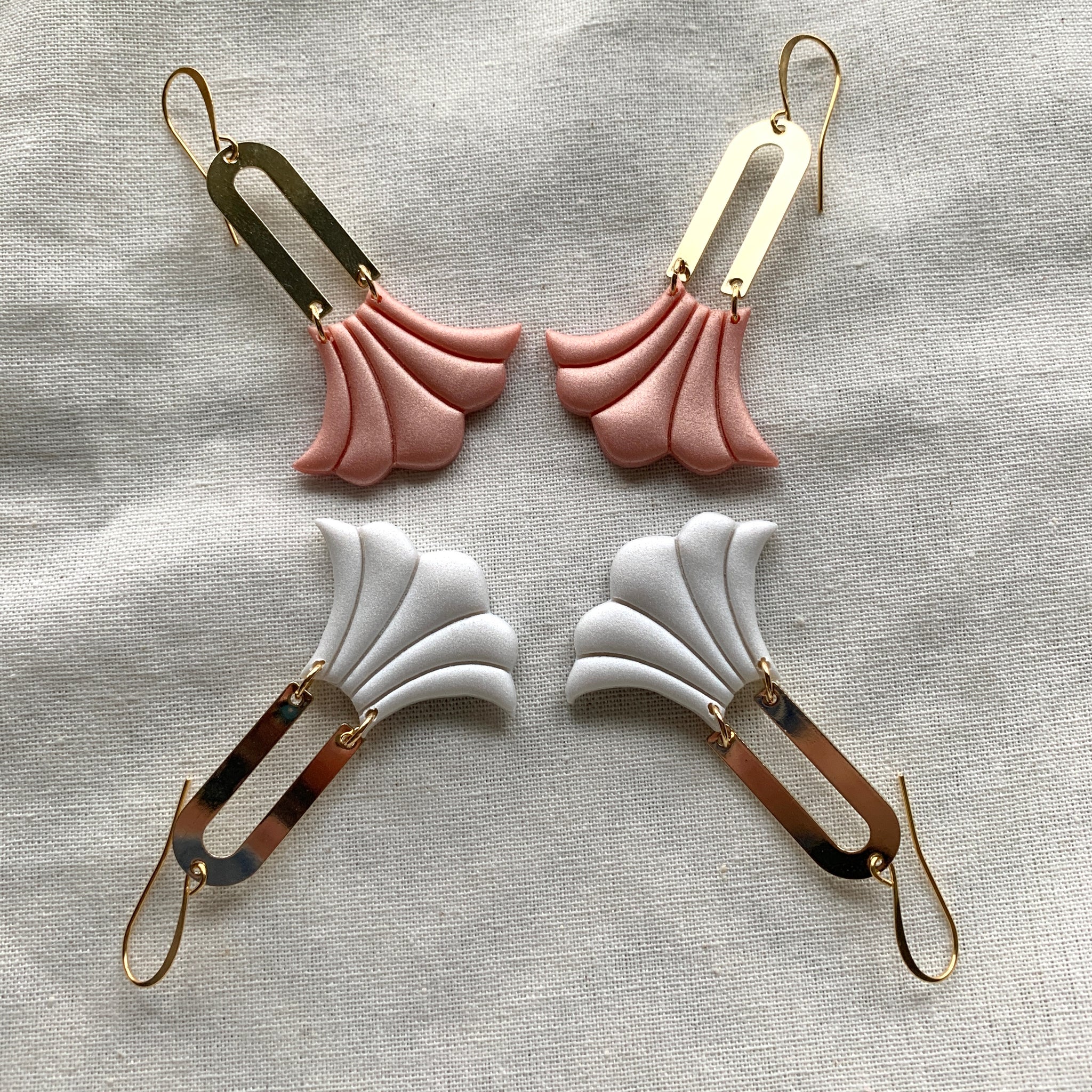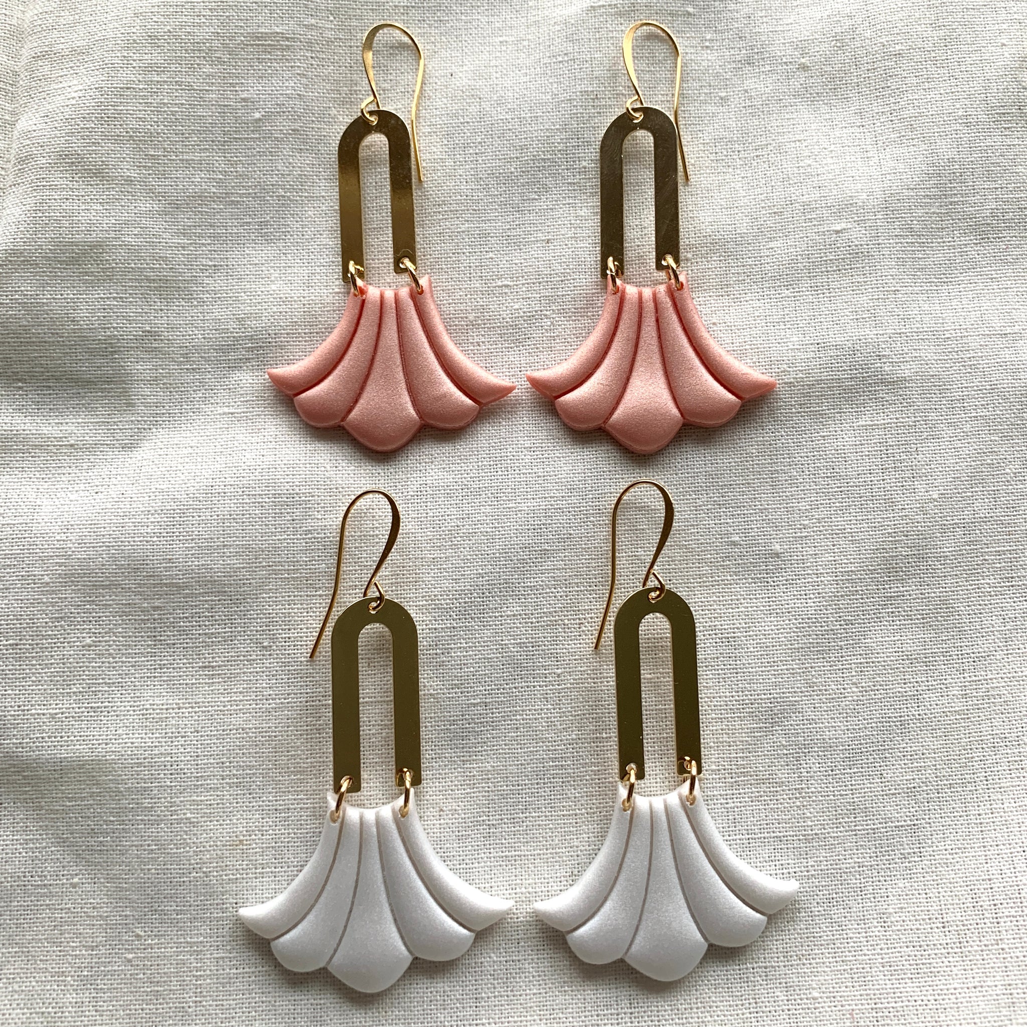 All earrings are handmade in very small batches of polymer clay. They are lightweight, but not as durable as metal or plastic, so please handle with care. Every piece is cut, sanded, buffed, and assembled with love by us. Due to the nature of handmade pieces, there may be slight variations or imperfections; no two pieces are 100% alike! Also please note the color of earrings may slightly differ due to computer monitor settings.