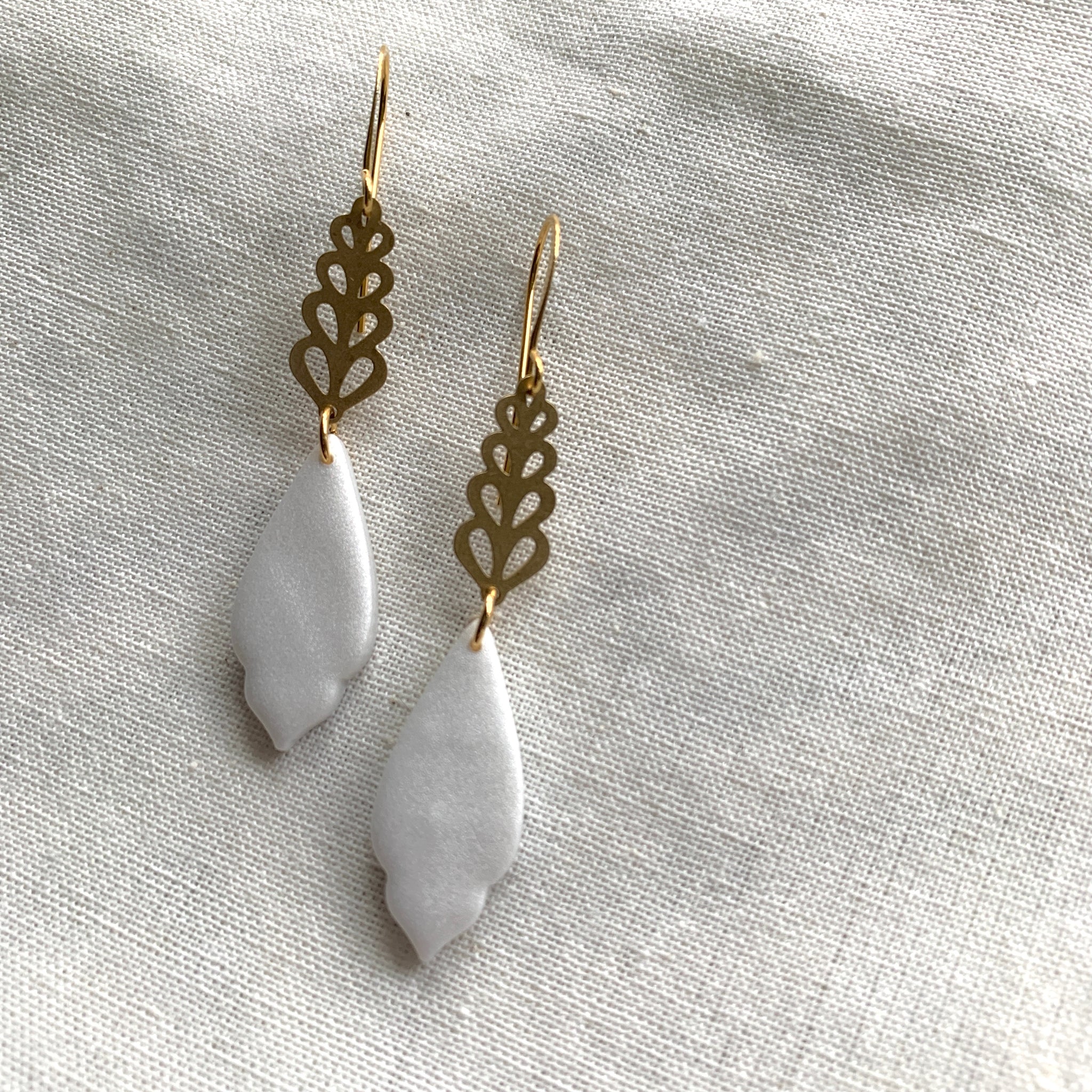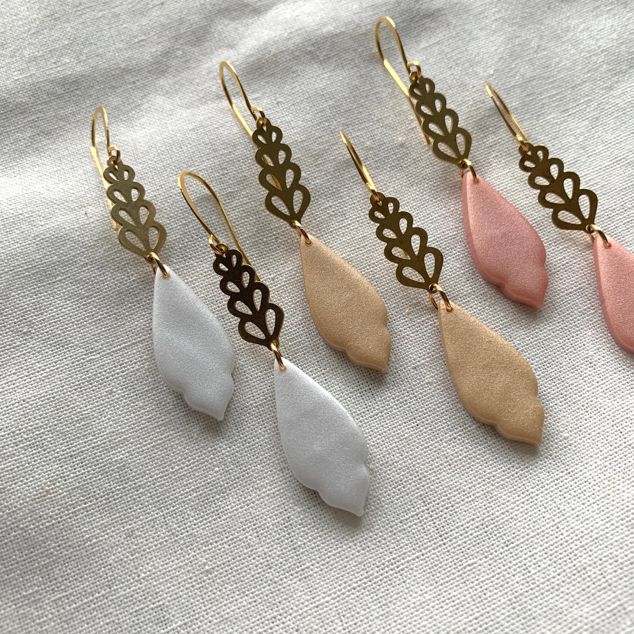 All earrings are handmade in very small batches of polymer clay. They are lightweight, but not as durable as metal or plastic, so please handle with care. Every piece is cut, sanded, buffed, and assembled with love by us. Due to the nature of handmade pieces, there may be slight variations or imperfections; no two pieces are 100% alike! Also please note the color of earrings may slightly differ due to computer monitor settings.