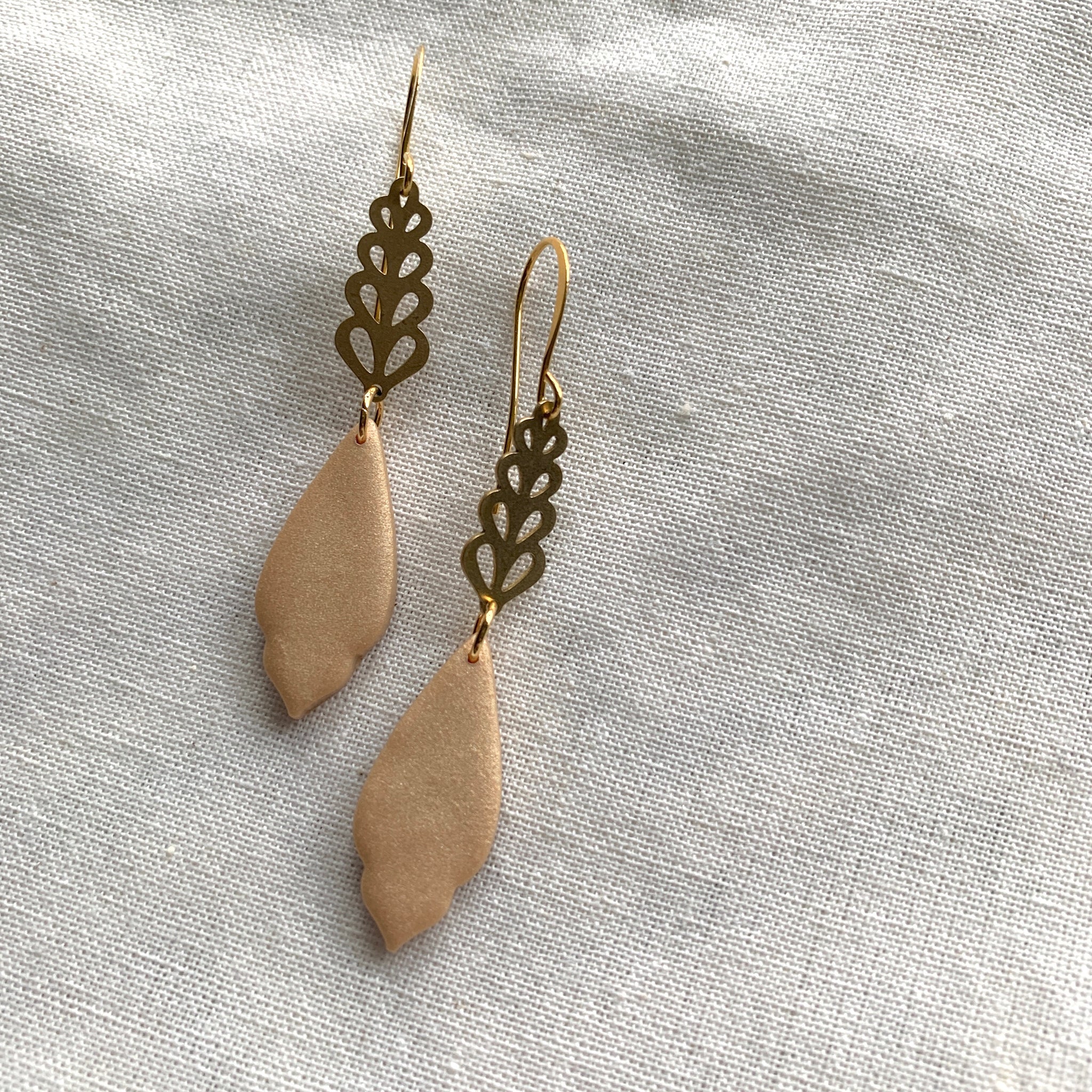 - Made with gold plated nickel free hooks by default, topped with a raw brass charm.