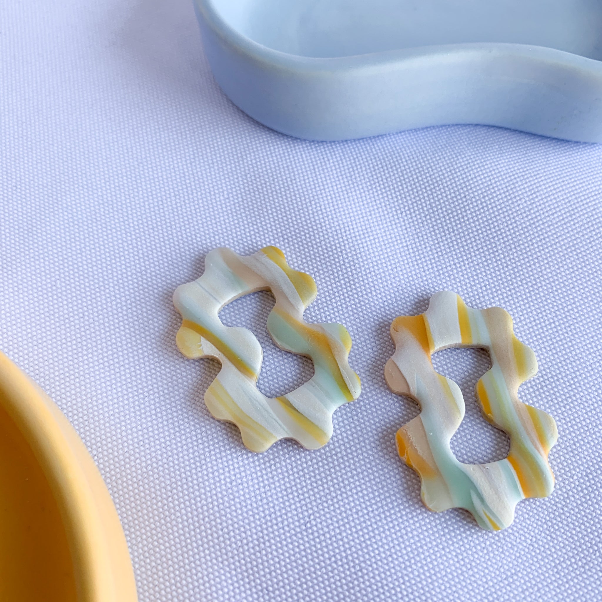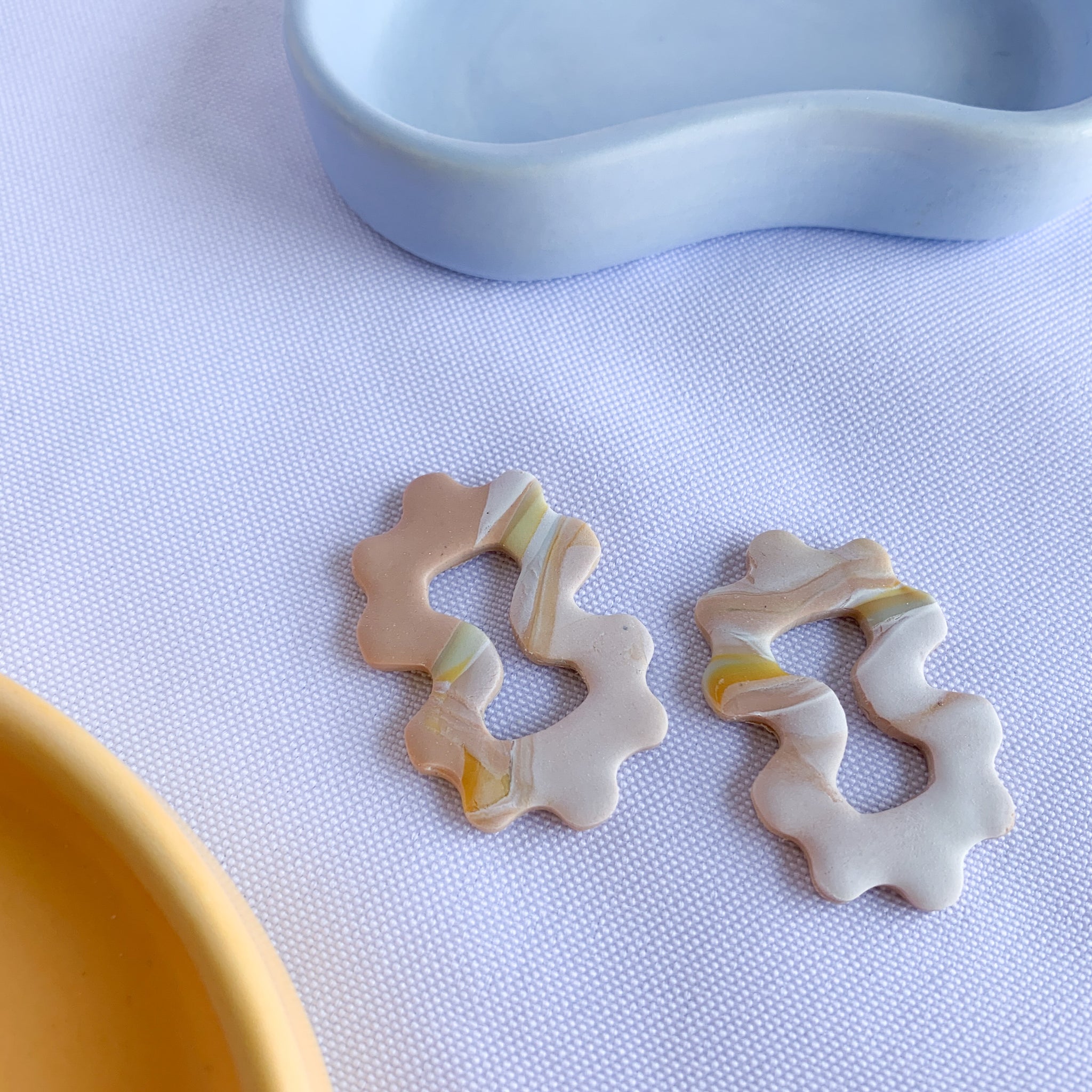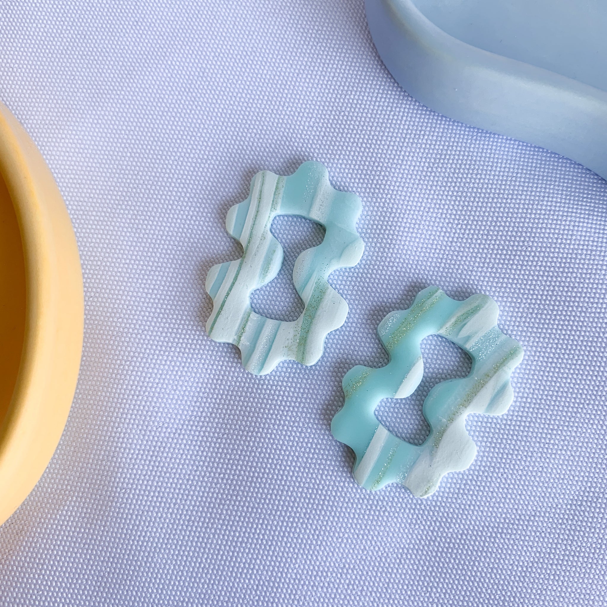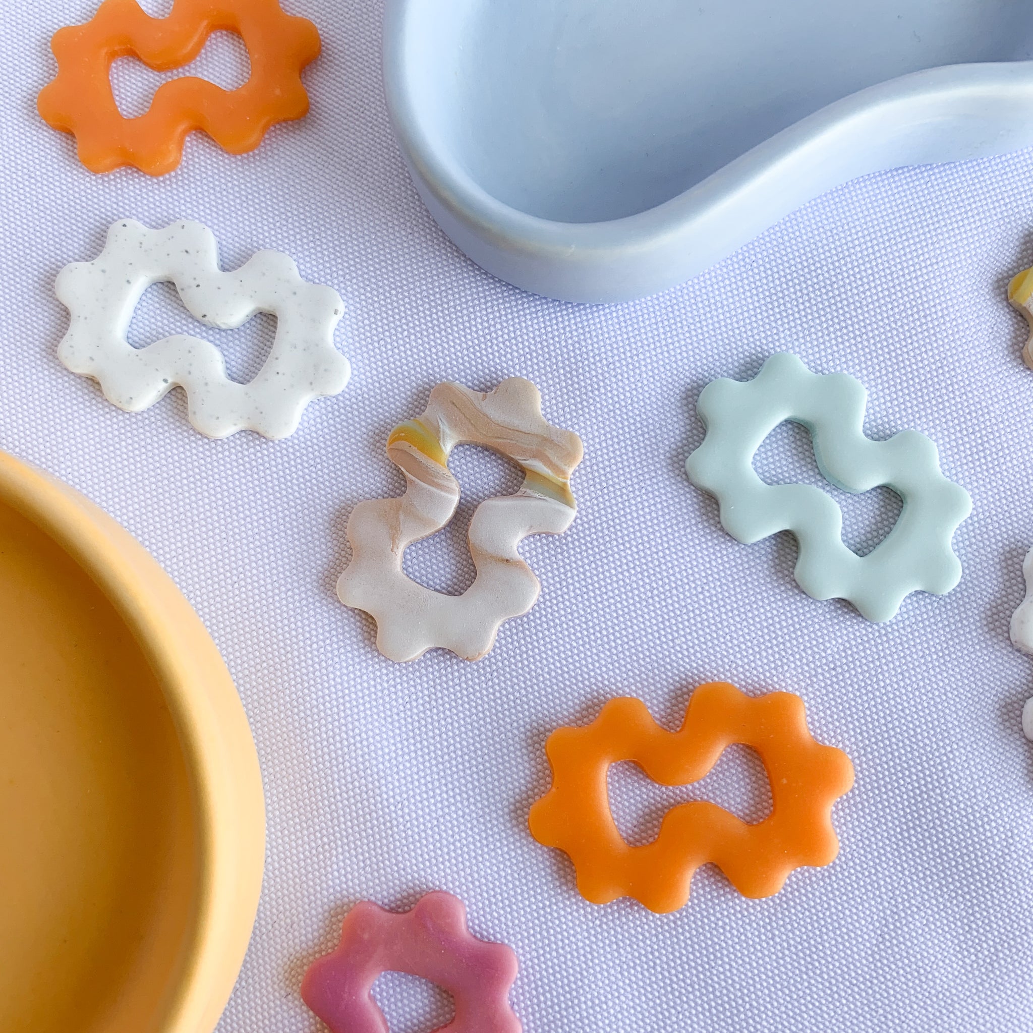All earrings are handmade in very small batches of polymer clay. They are lightweight, but not as durable as metal or plastic, so please handle with care. Every piece is cut, sanded, buffed, and assembled with love by us. Due to the nature of handmade pieces, there may be slight variations or imperfections; no two pieces are 100% alike! Also please note the color of earrings may slightly differ due to computer monitor settings.