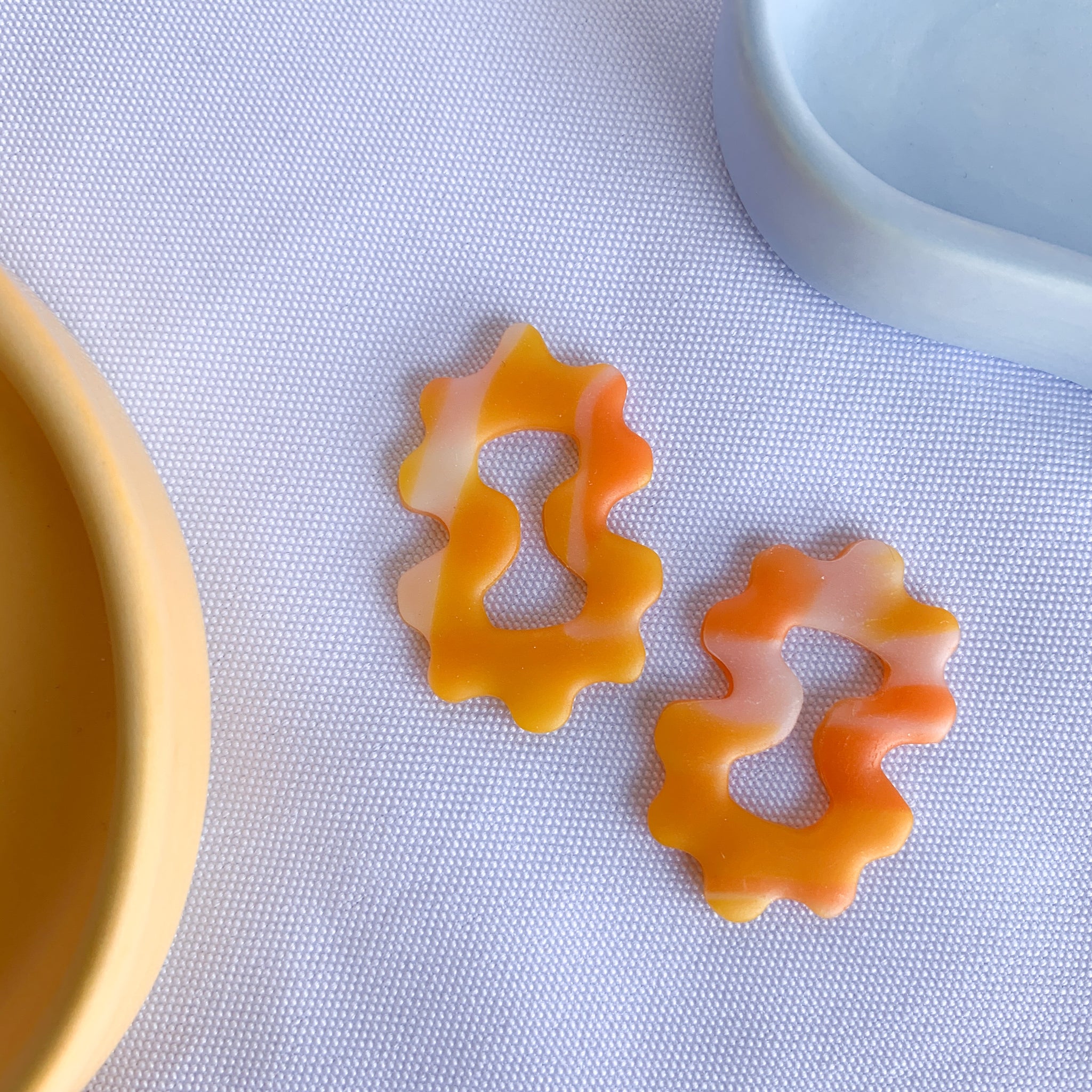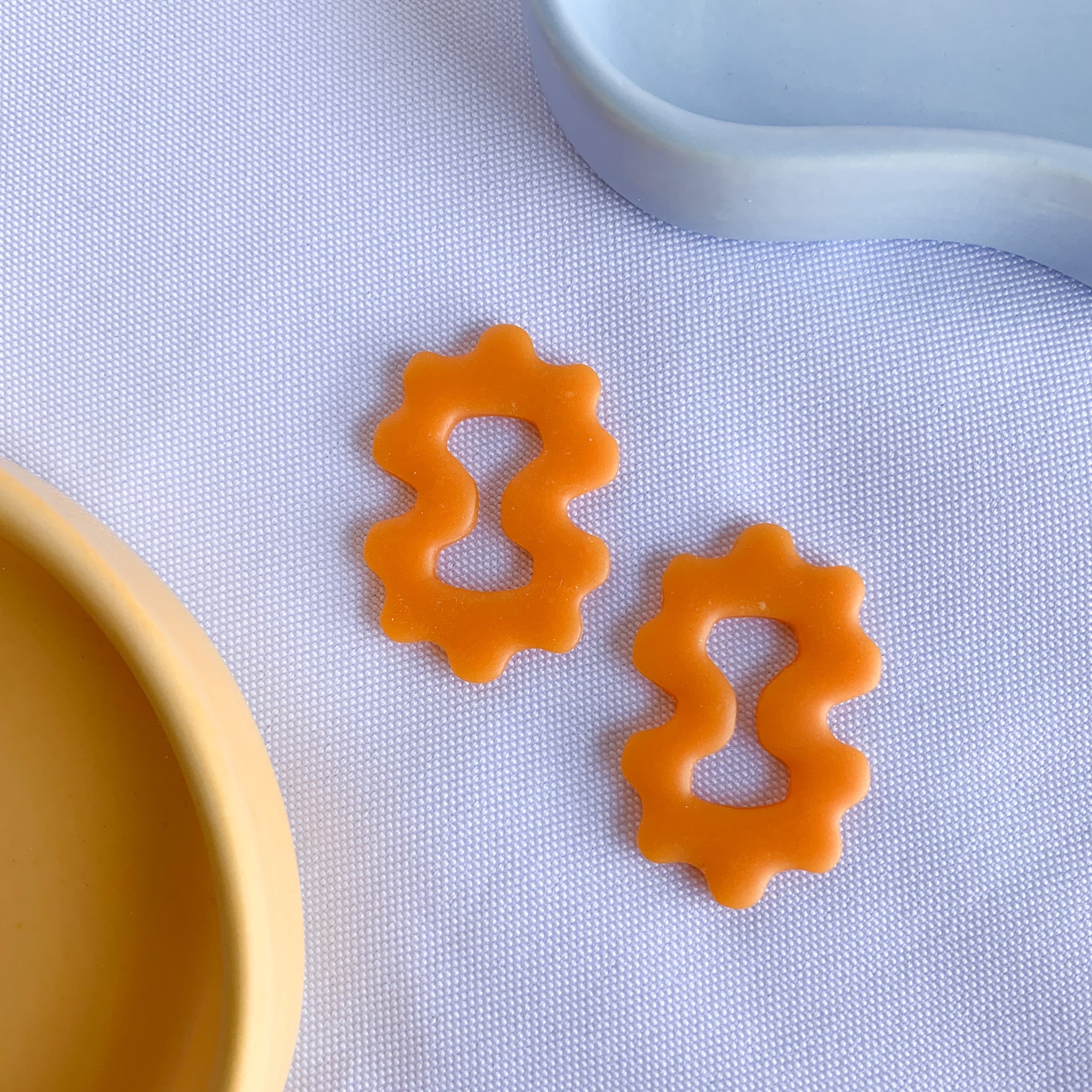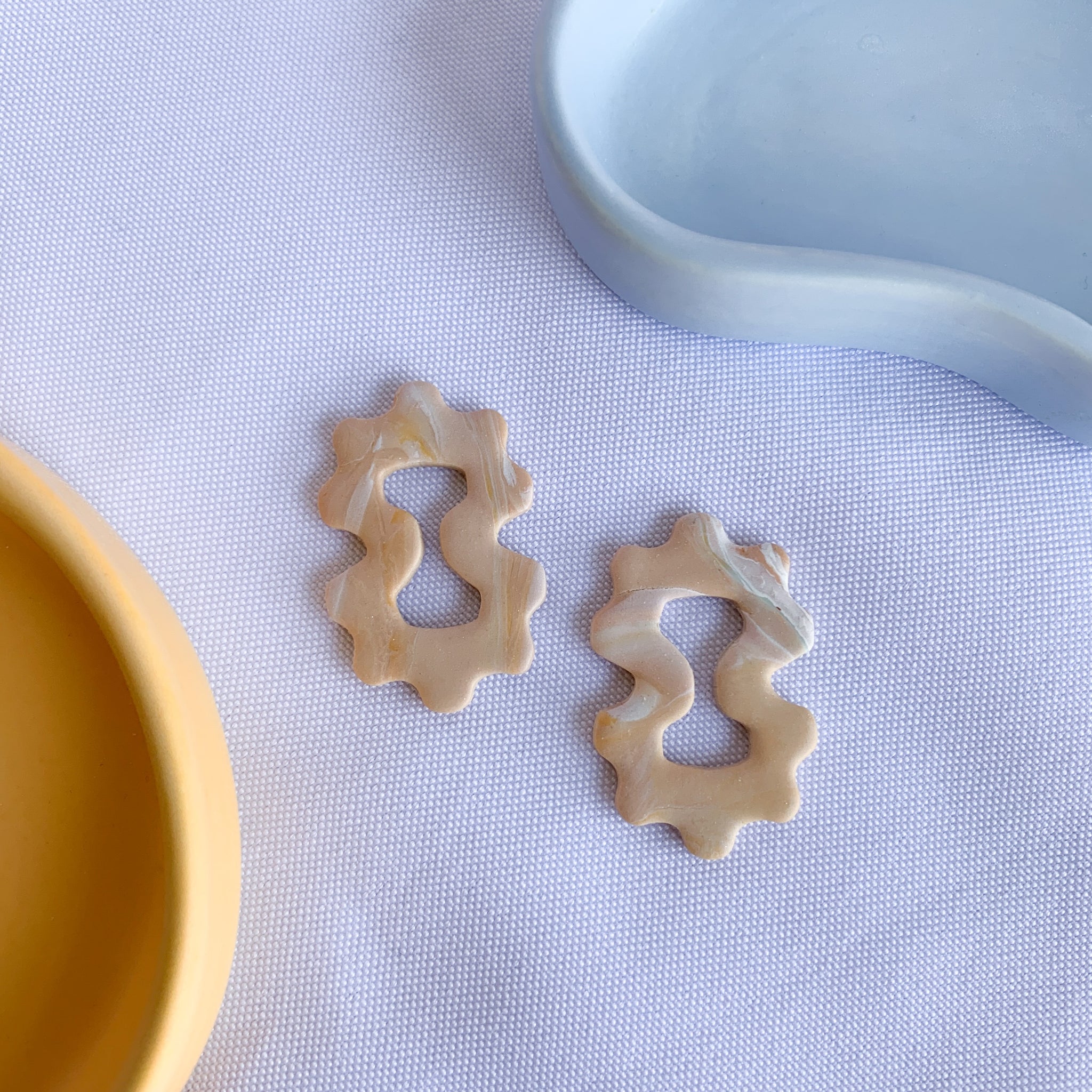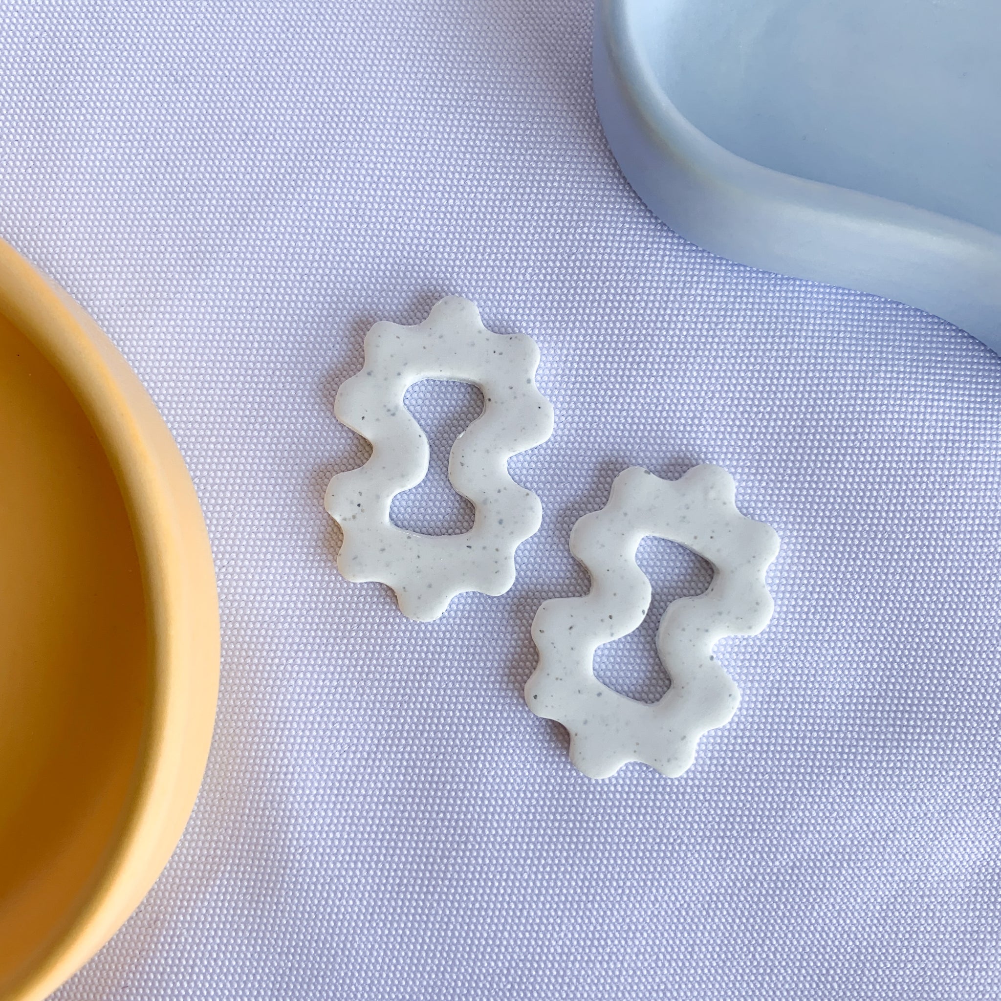 All earrings are handmade in very small batches of polymer clay. They are lightweight, but not as durable as metal or plastic, so please handle with care. Every piece is cut, sanded, buffed, and assembled with love by us. Due to the nature of handmade pieces, there may be slight variations or imperfections; no two pieces are 100% alike! Also please note the color of earrings may slightly differ due to computer monitor settings.