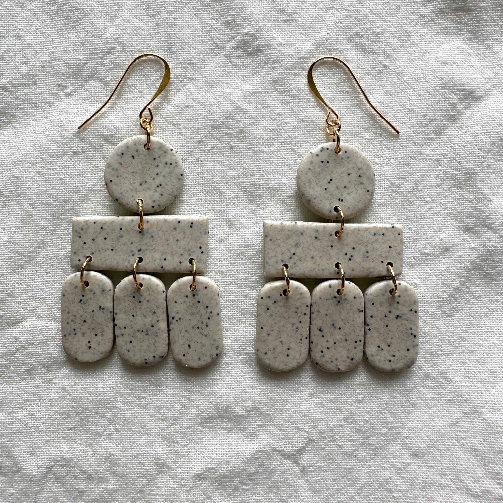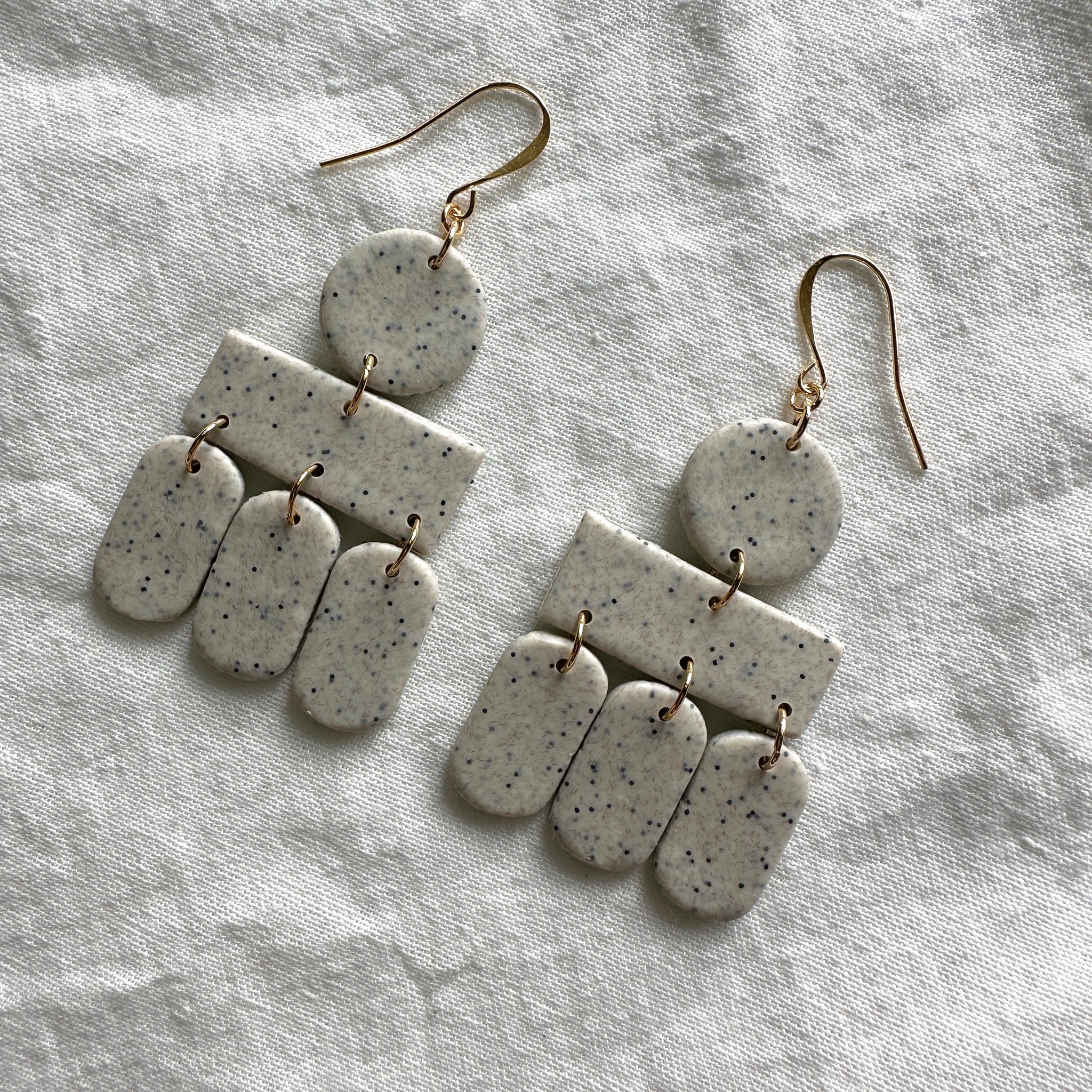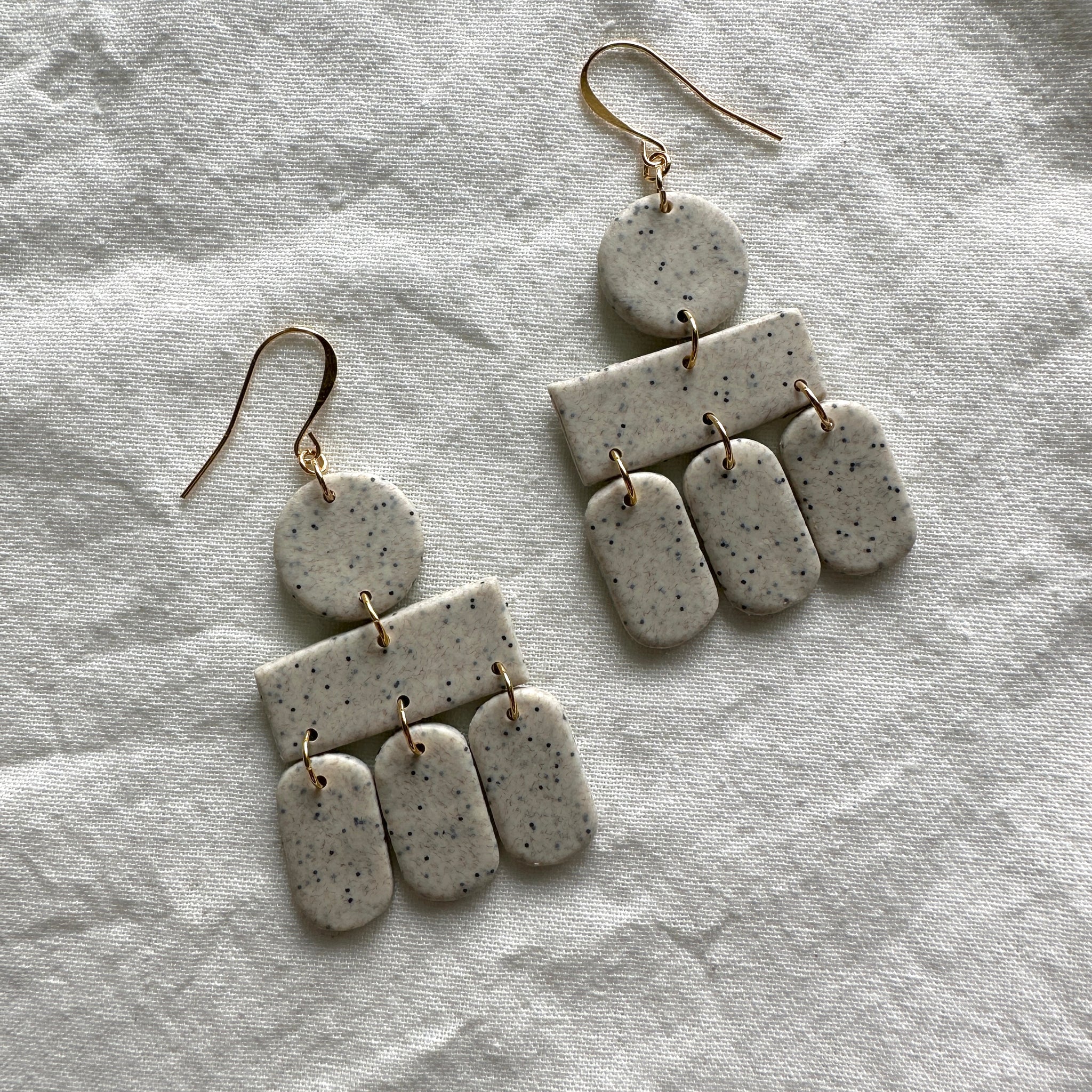 All earrings are handmade in very small batches of polymer clay. They are lightweight, but not as durable as metal or plastic, so please handle with care. Every piece is cut, sanded, buffed, and assembled with love by us. Due to the nature of handmade pieces, there may be slight variations or imperfections; no two pieces are 100% alike! Also please note the color of earrings may slightly differ due to computer monitor settings.