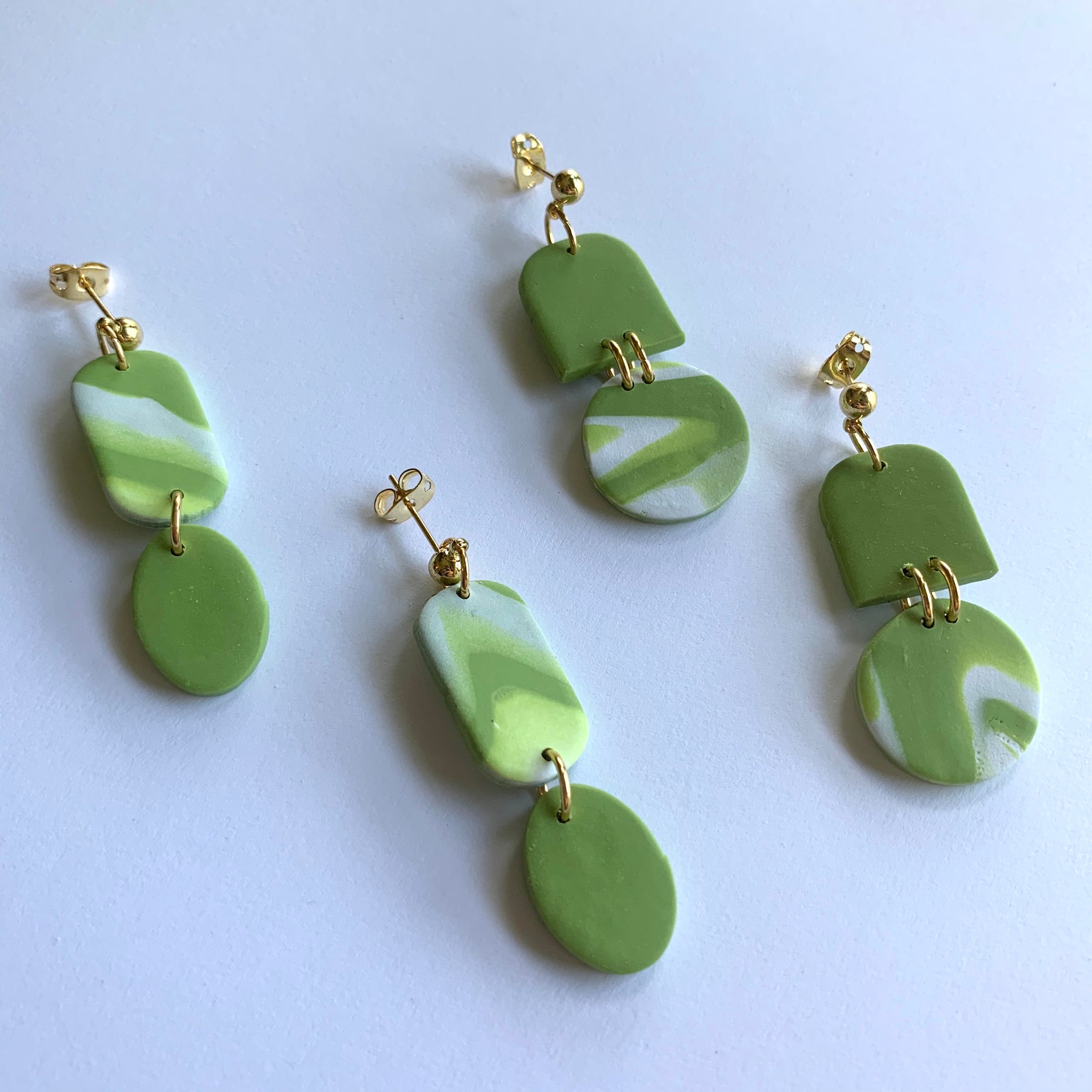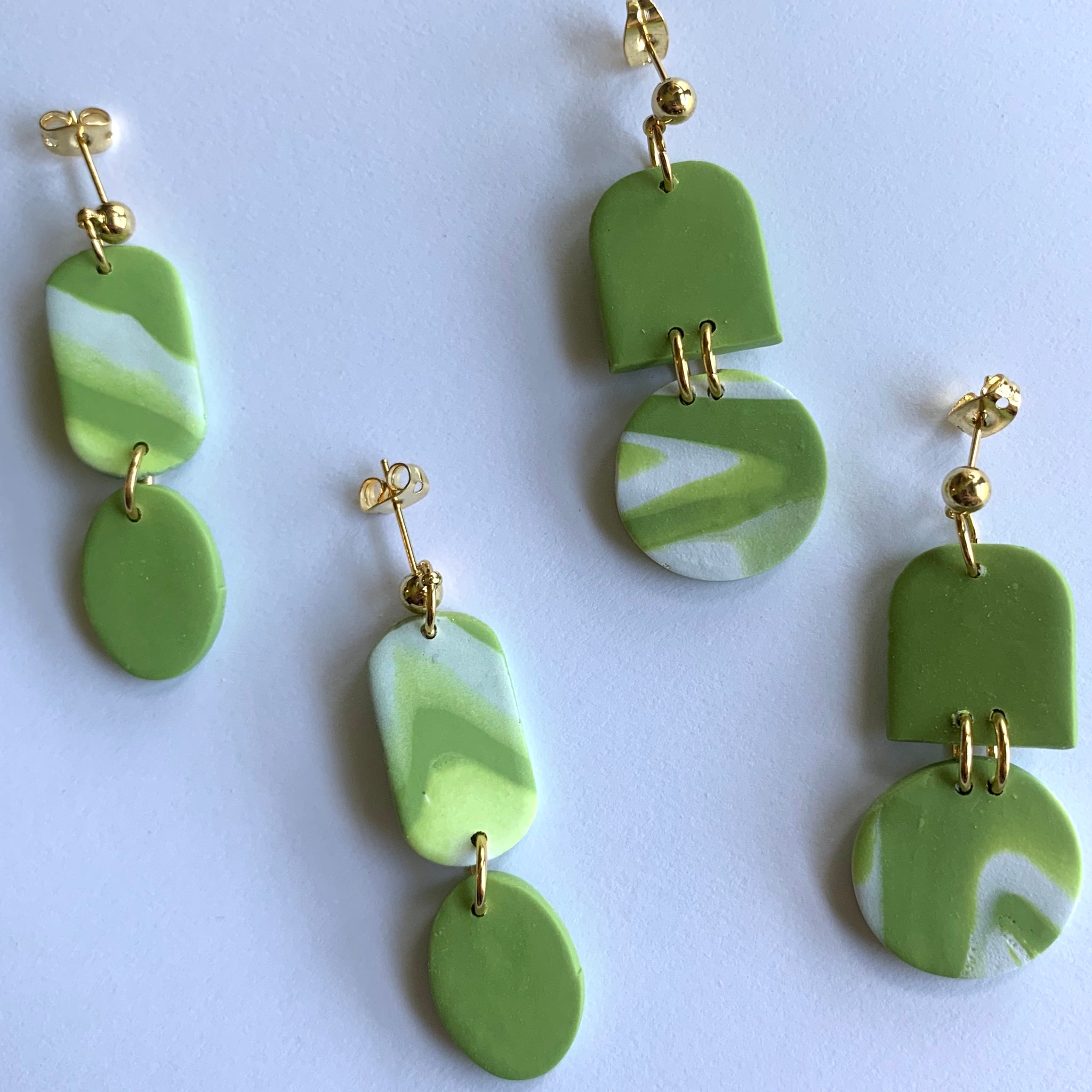 All earrings are handmade in very small batches of polymer clay. They are lightweight, but not as durable as metal or plastic, so please handle with care. Every piece is cut, sanded, buffed, and assembled with love by us. Due to the nature of handmade pieces, there may be slight variations or imperfections; no two pieces are 100% alike! Also please note the color of earrings may slightly differ due to computer monitor settings.