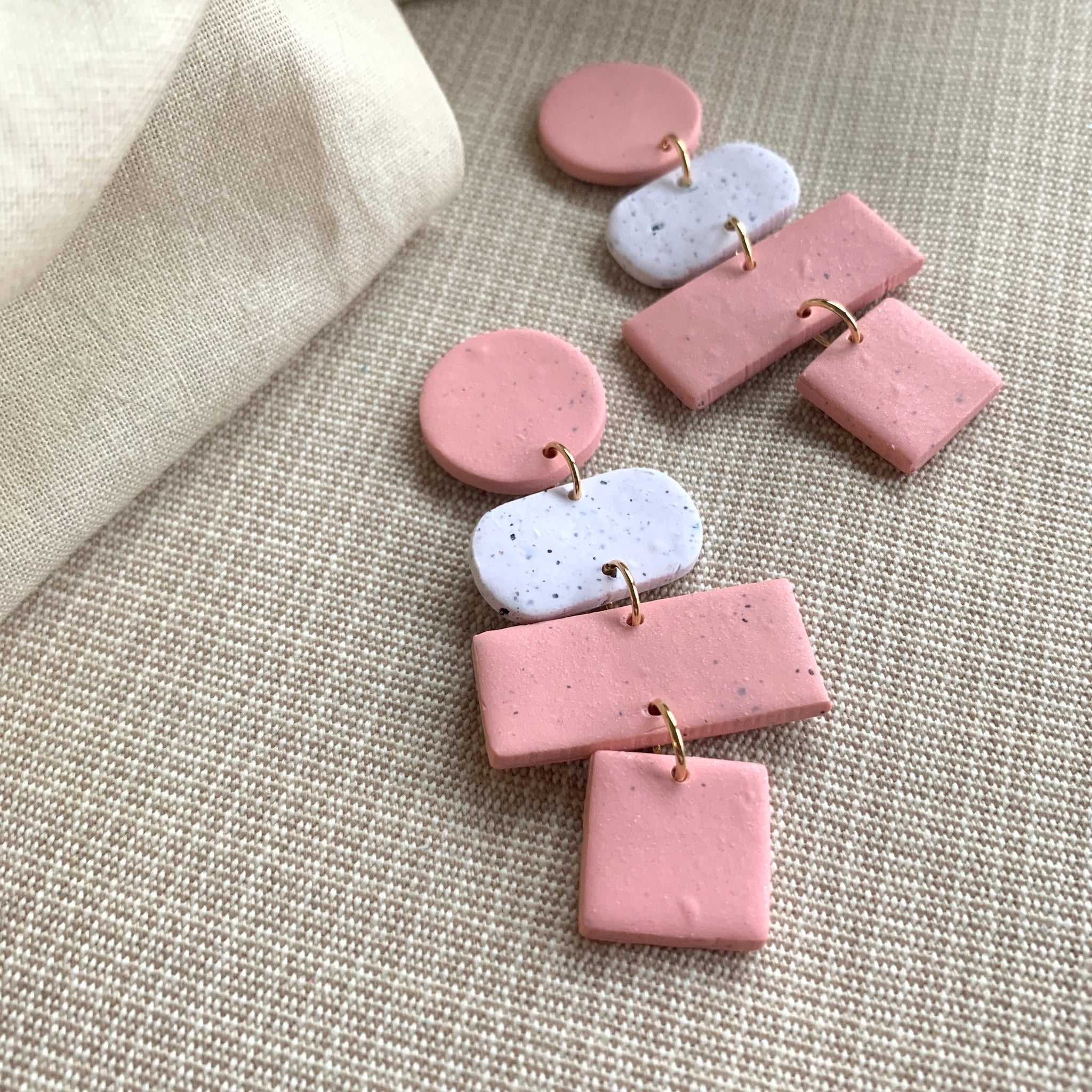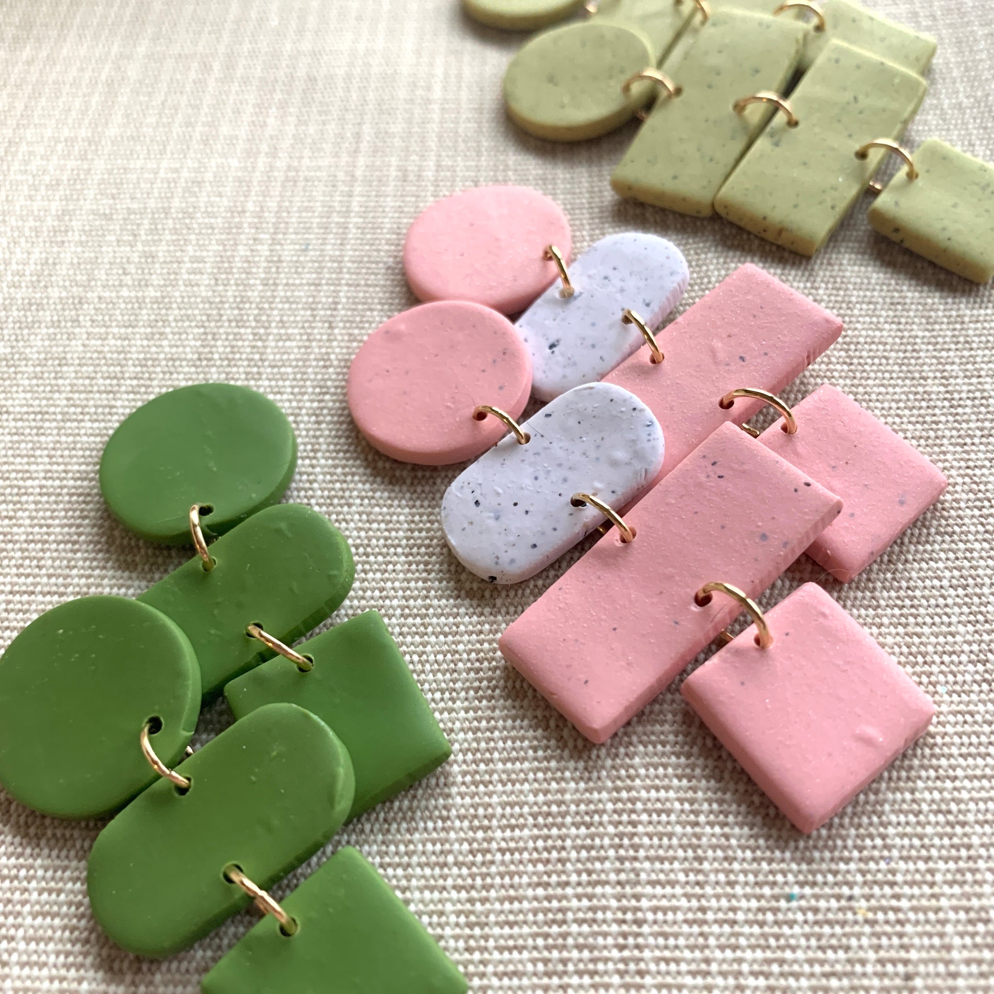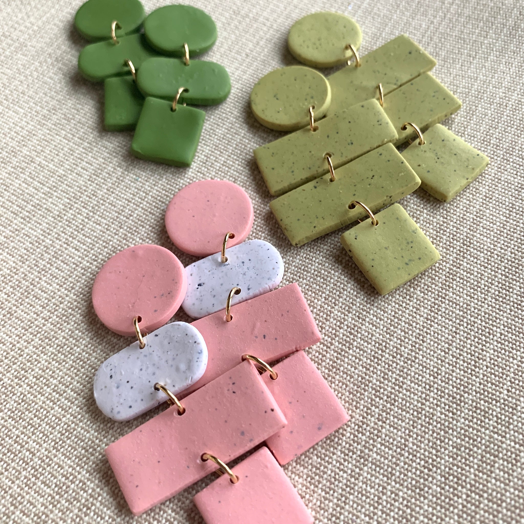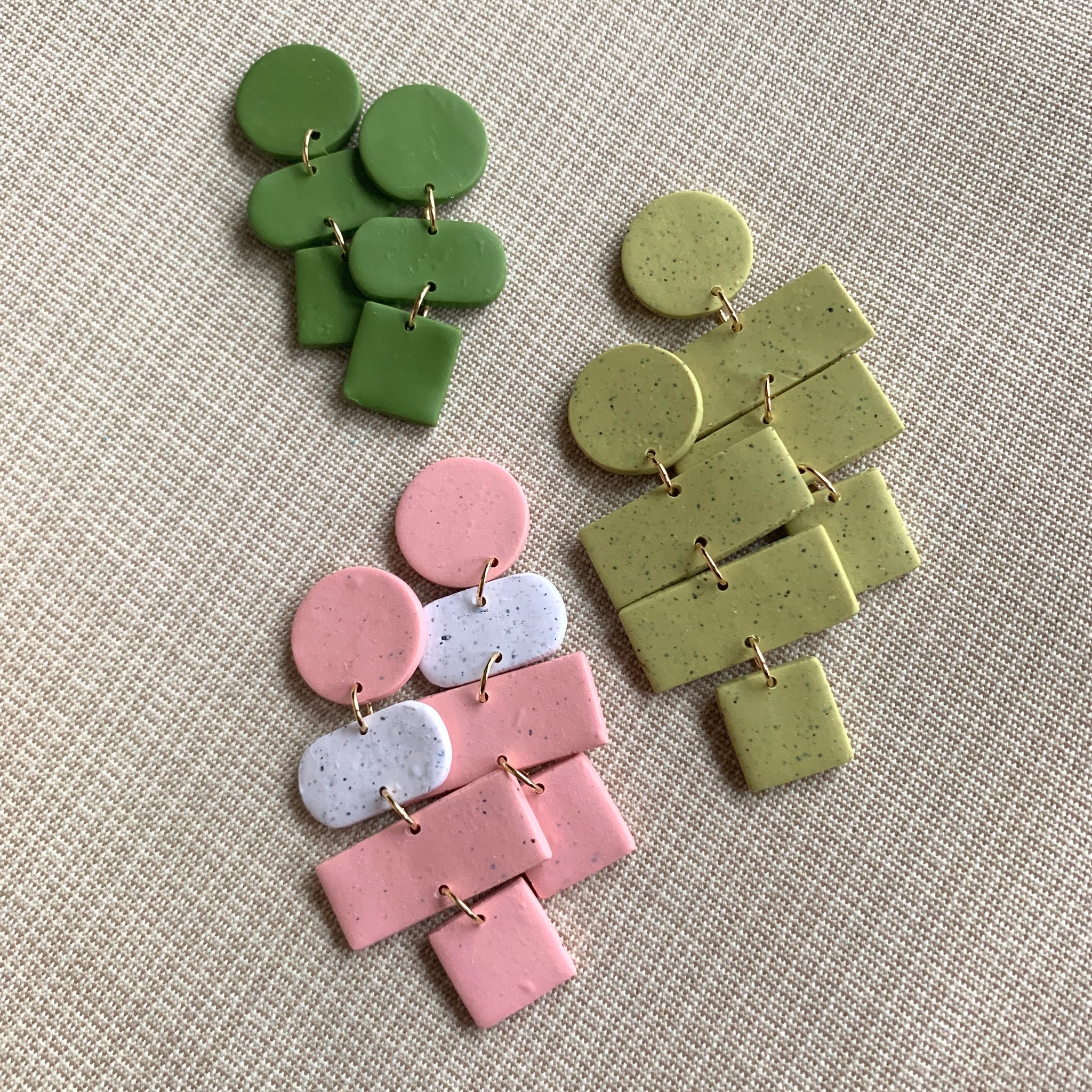 All earrings are handmade in very small batches of polymer clay. They are lightweight, but not as durable as metal or plastic, so please handle with care. Every piece is cut, sanded, buffed, and assembled with love by us. Due to the nature of handmade pieces, there may be slight variations or imperfections; no two pieces are 100% alike! Also please note the color of earrings may slightly differ due to computer monitor settings.