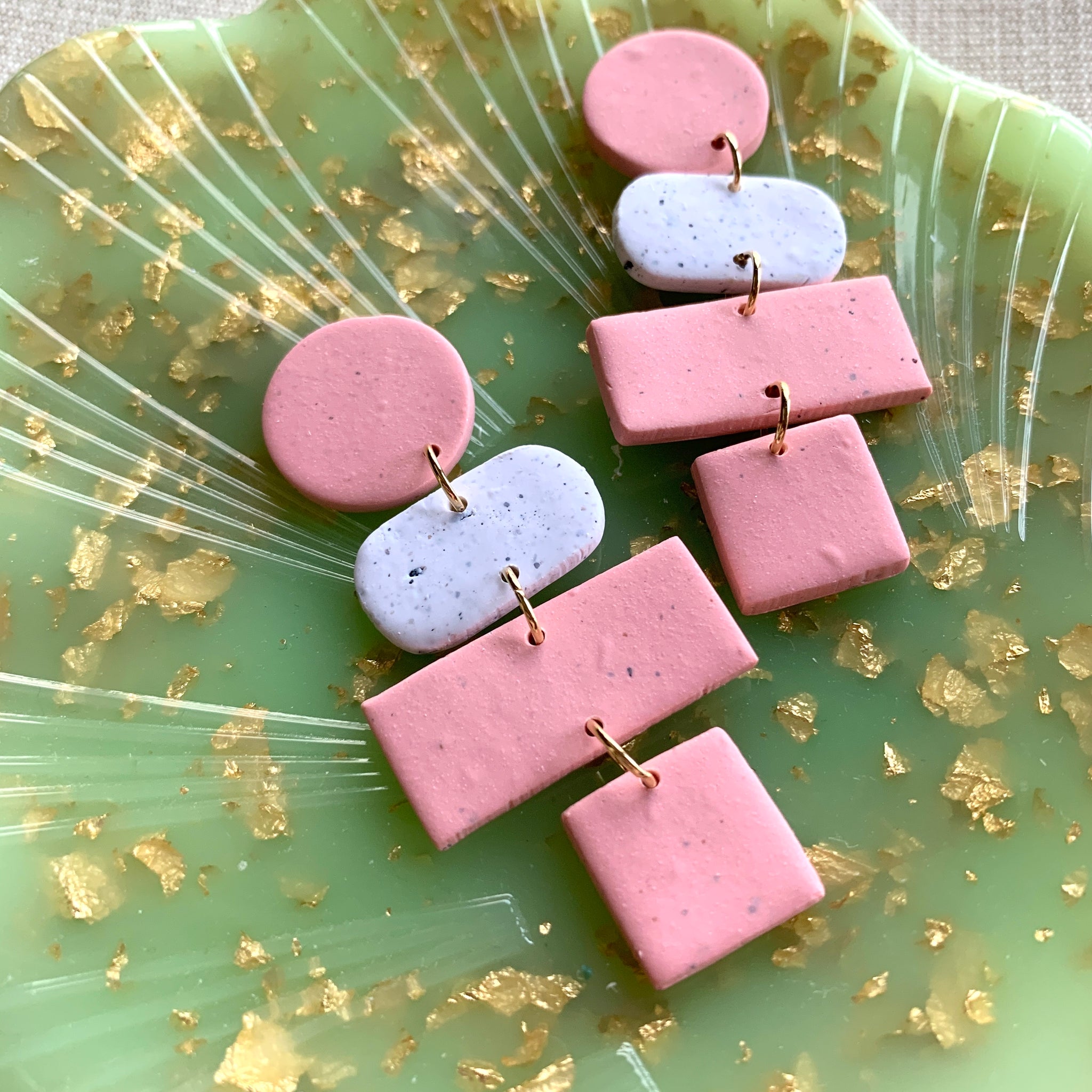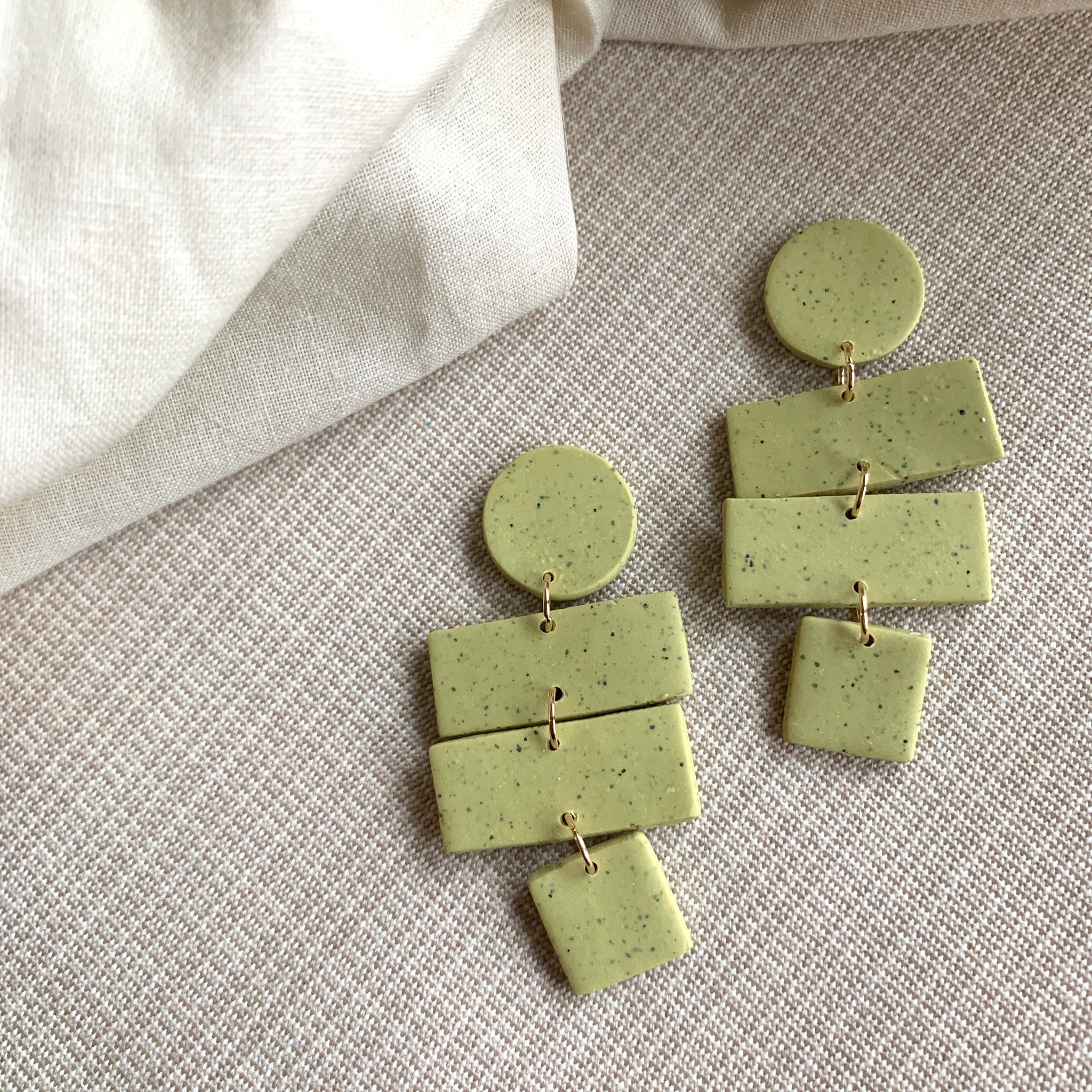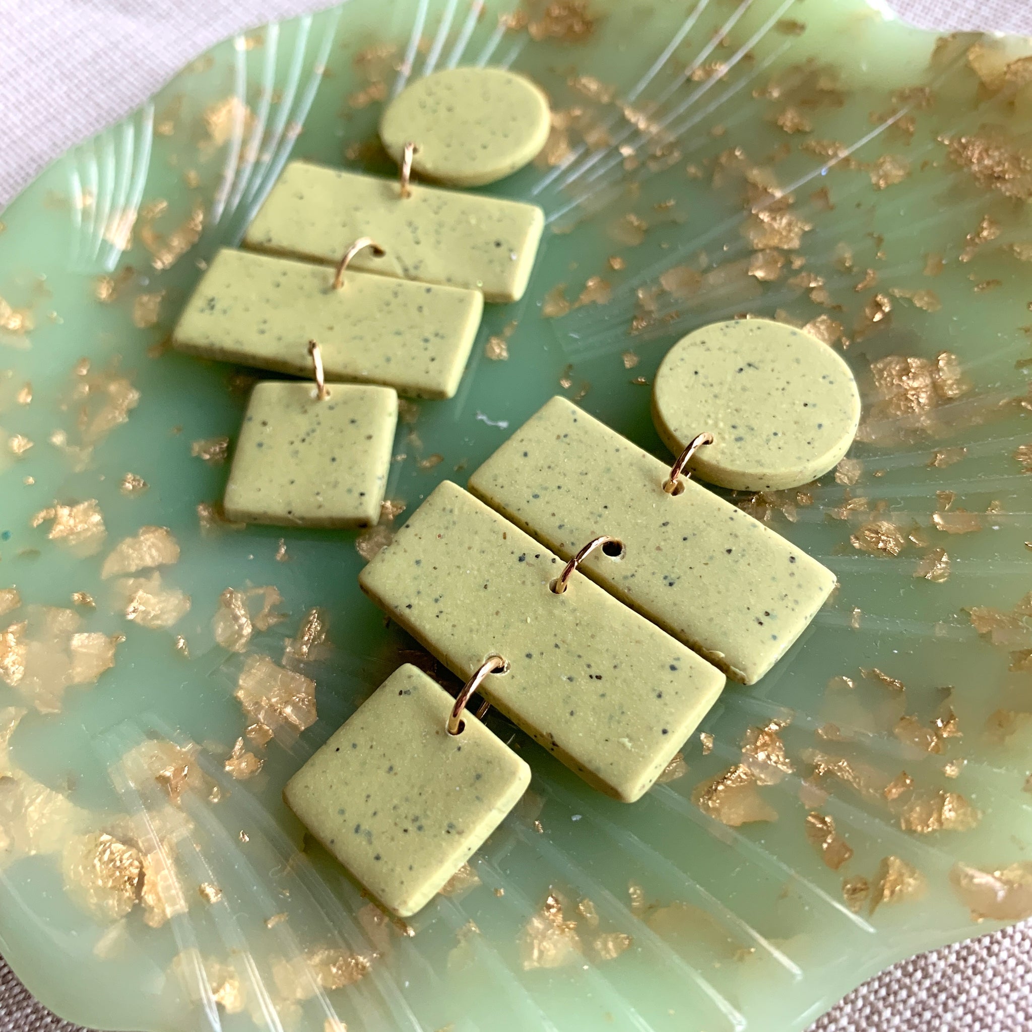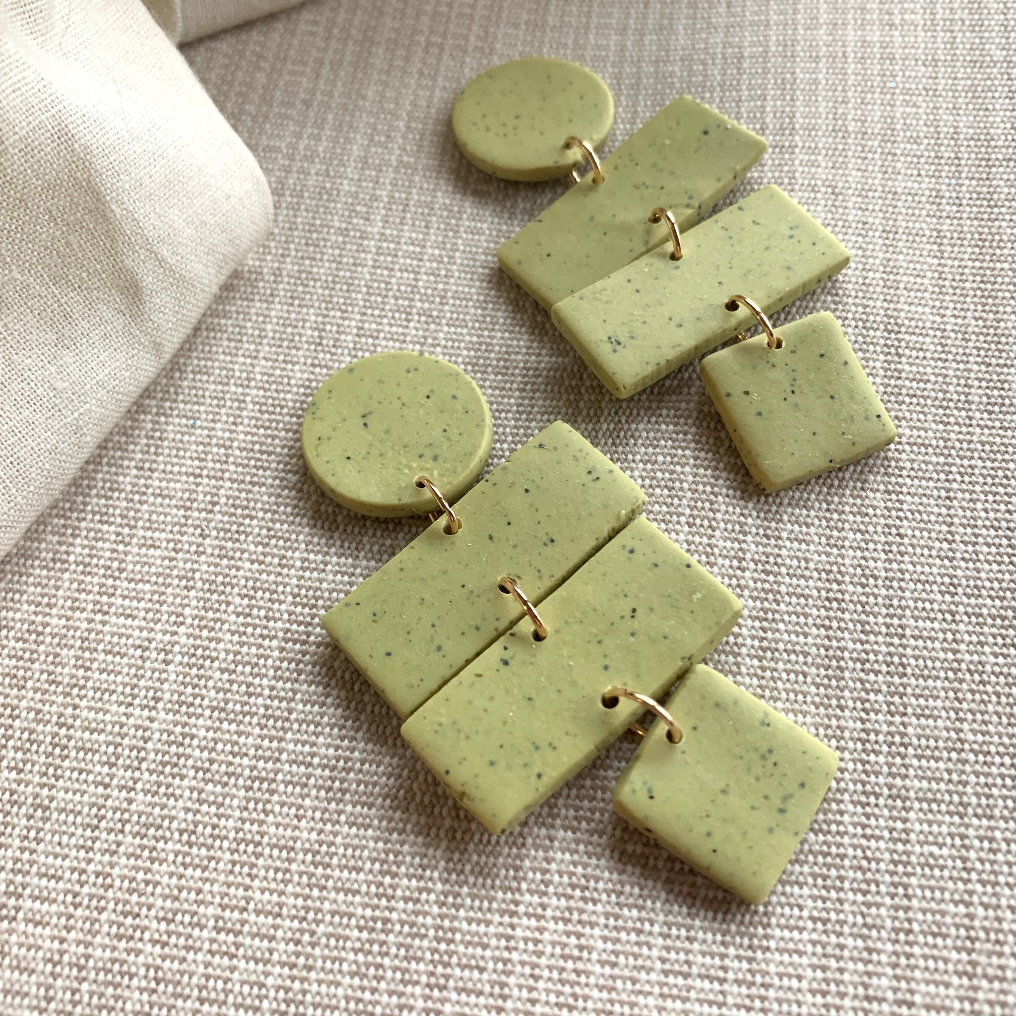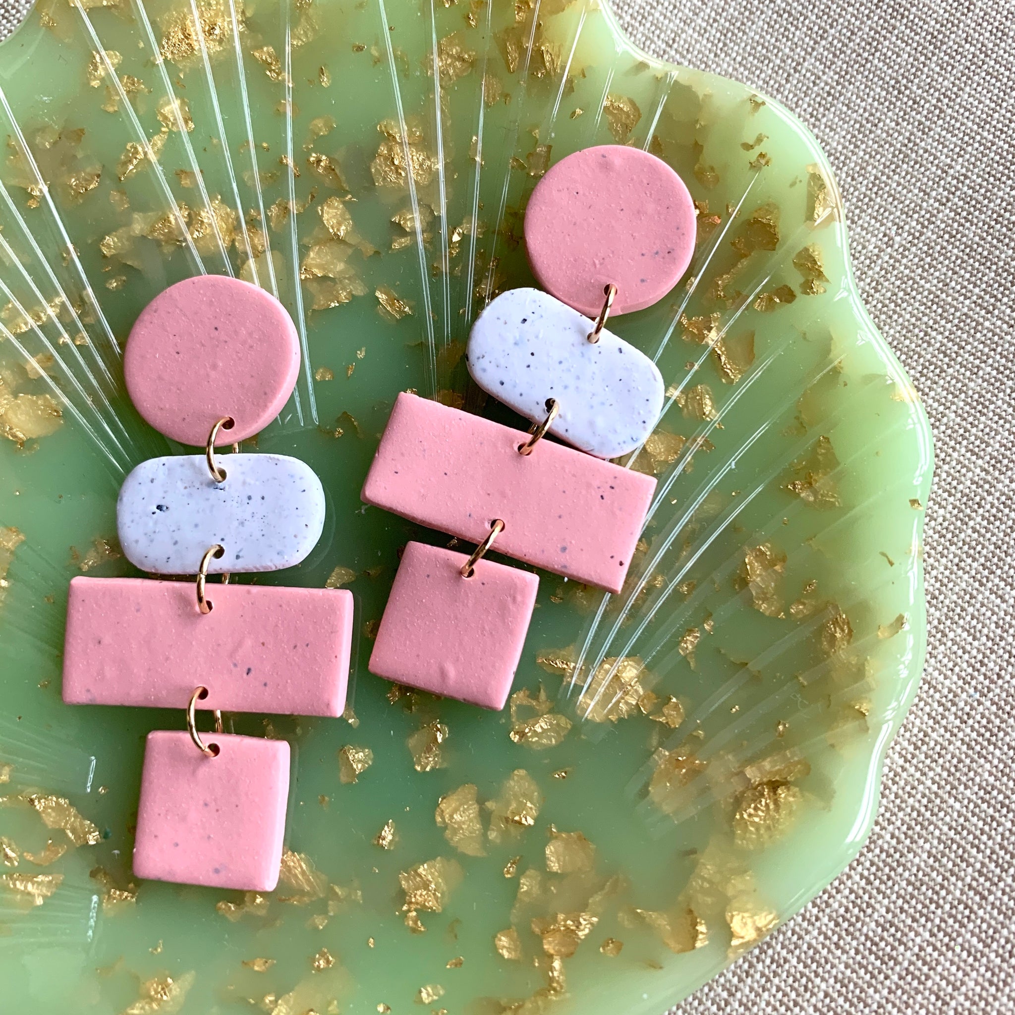 All earrings are handmade in very small batches of polymer clay. They are lightweight, but not as durable as metal or plastic, so please handle with care. Every piece is cut, sanded, buffed, and assembled with love by us. Due to the nature of handmade pieces, there may be slight variations or imperfections; no two pieces are 100% alike! Also please note the color of earrings may slightly differ due to computer monitor settings.