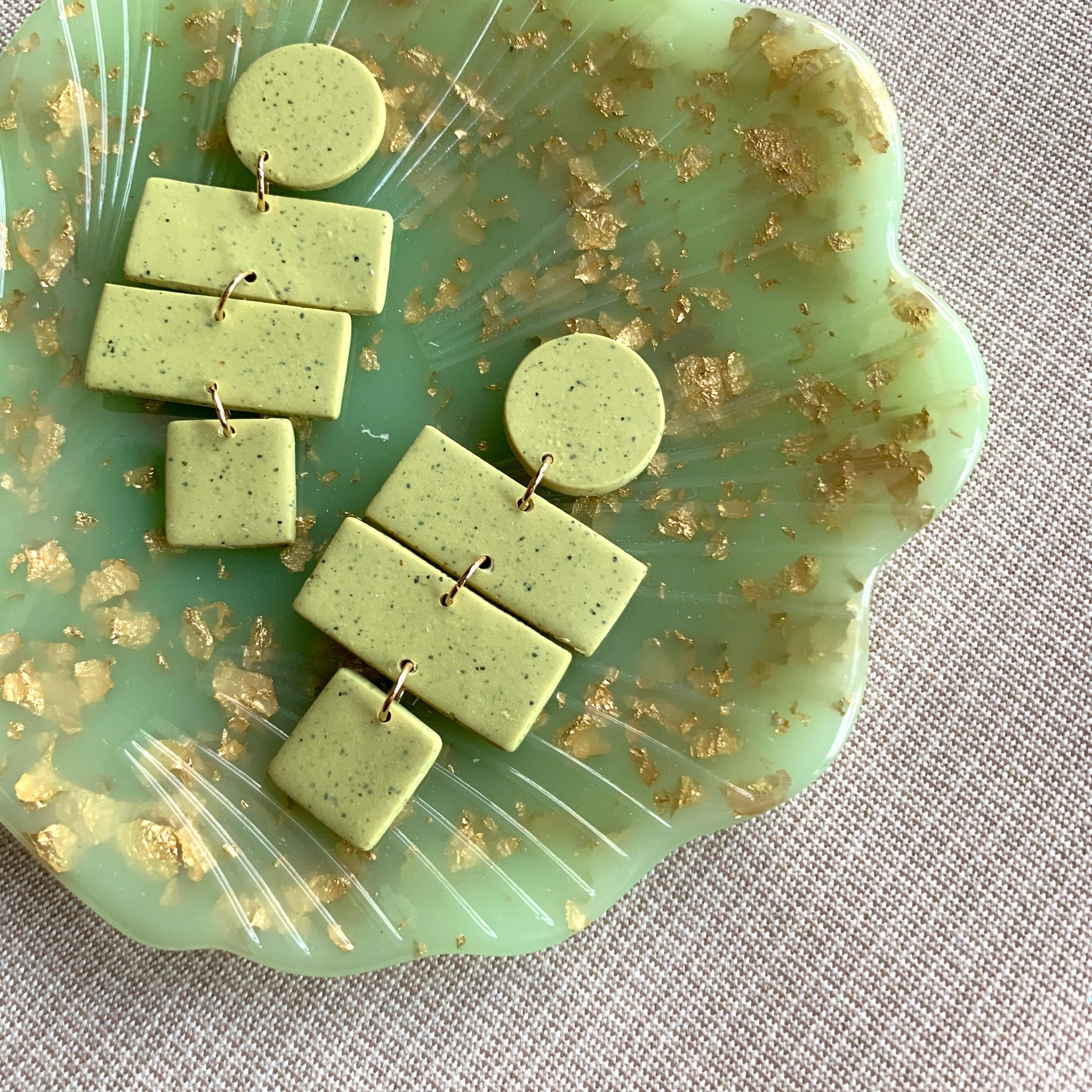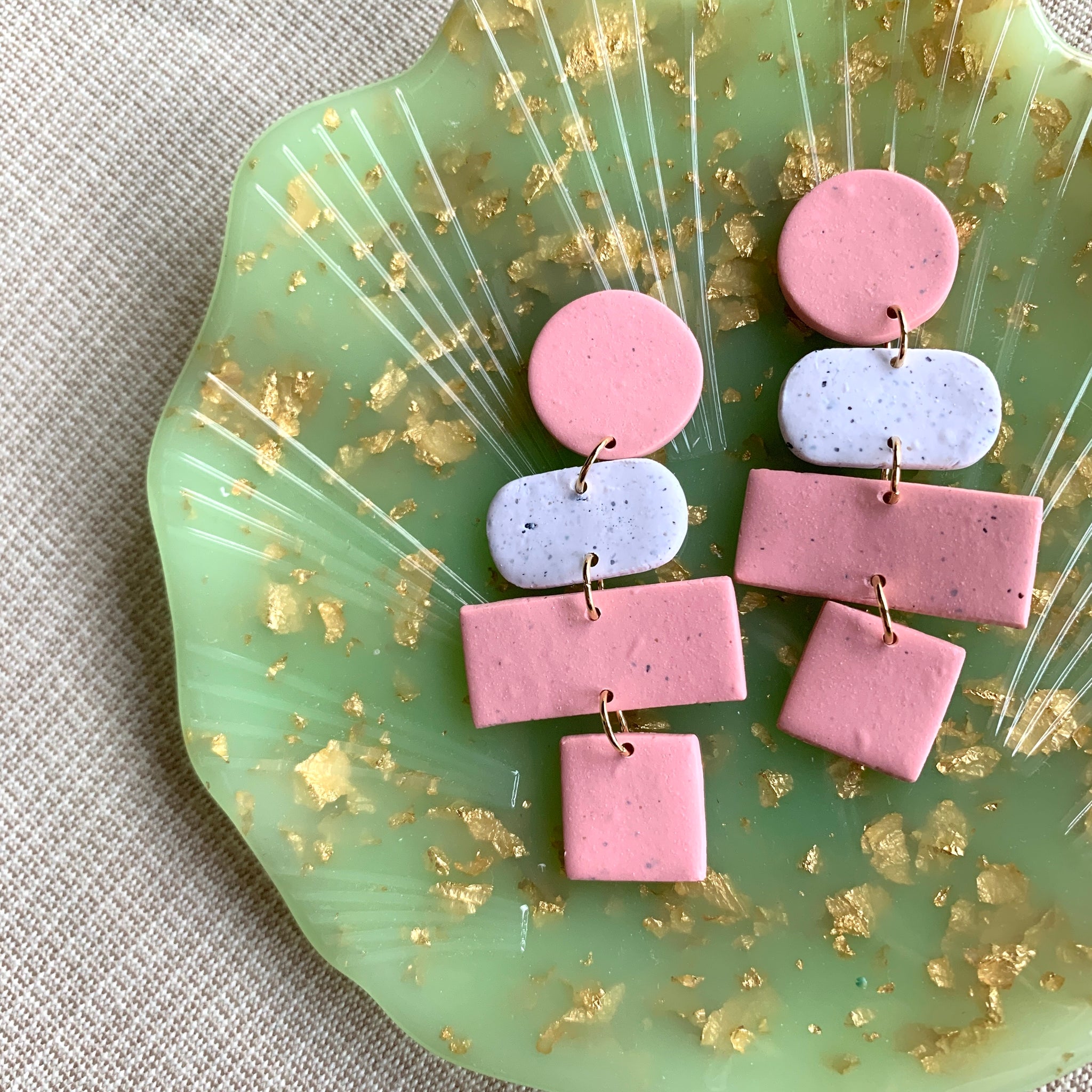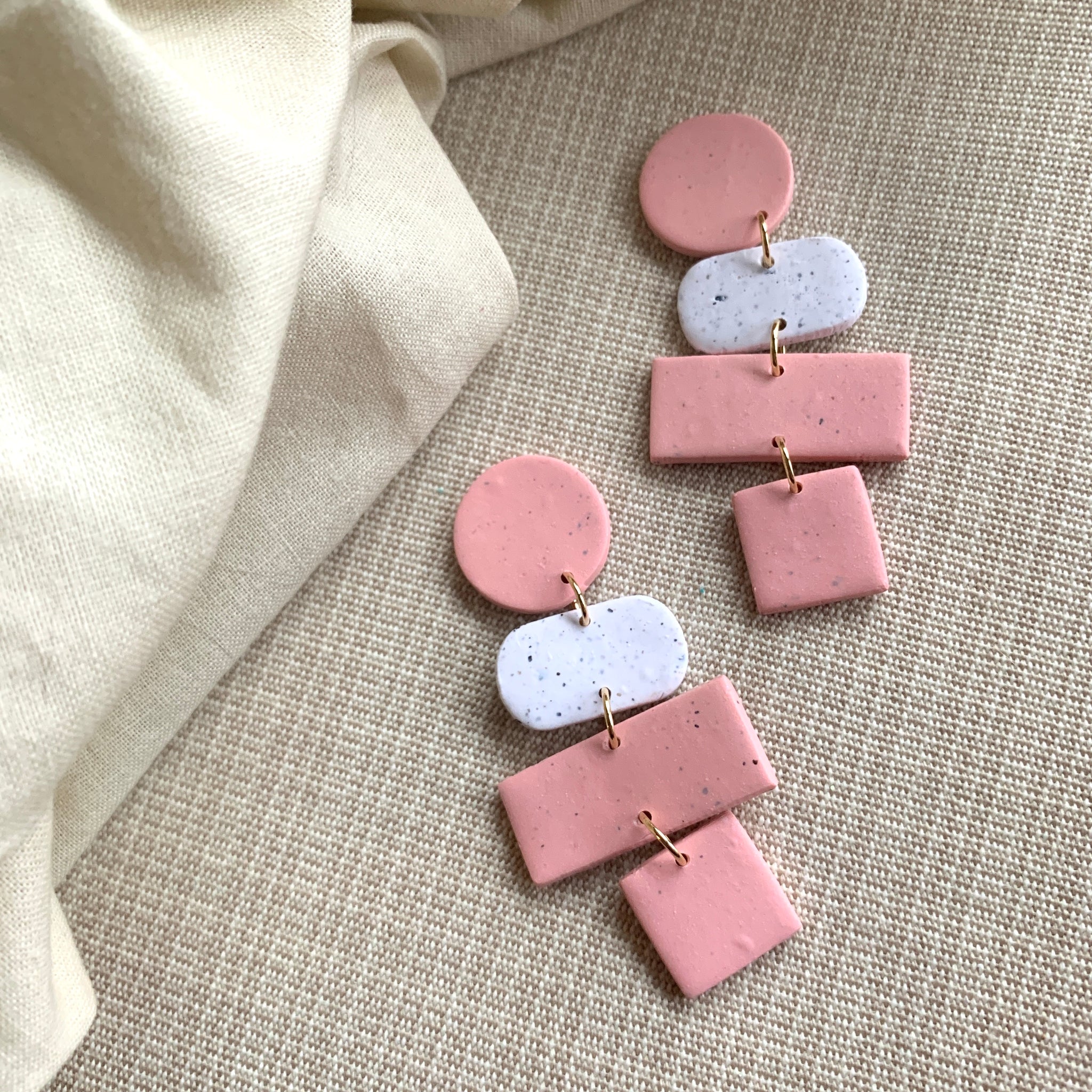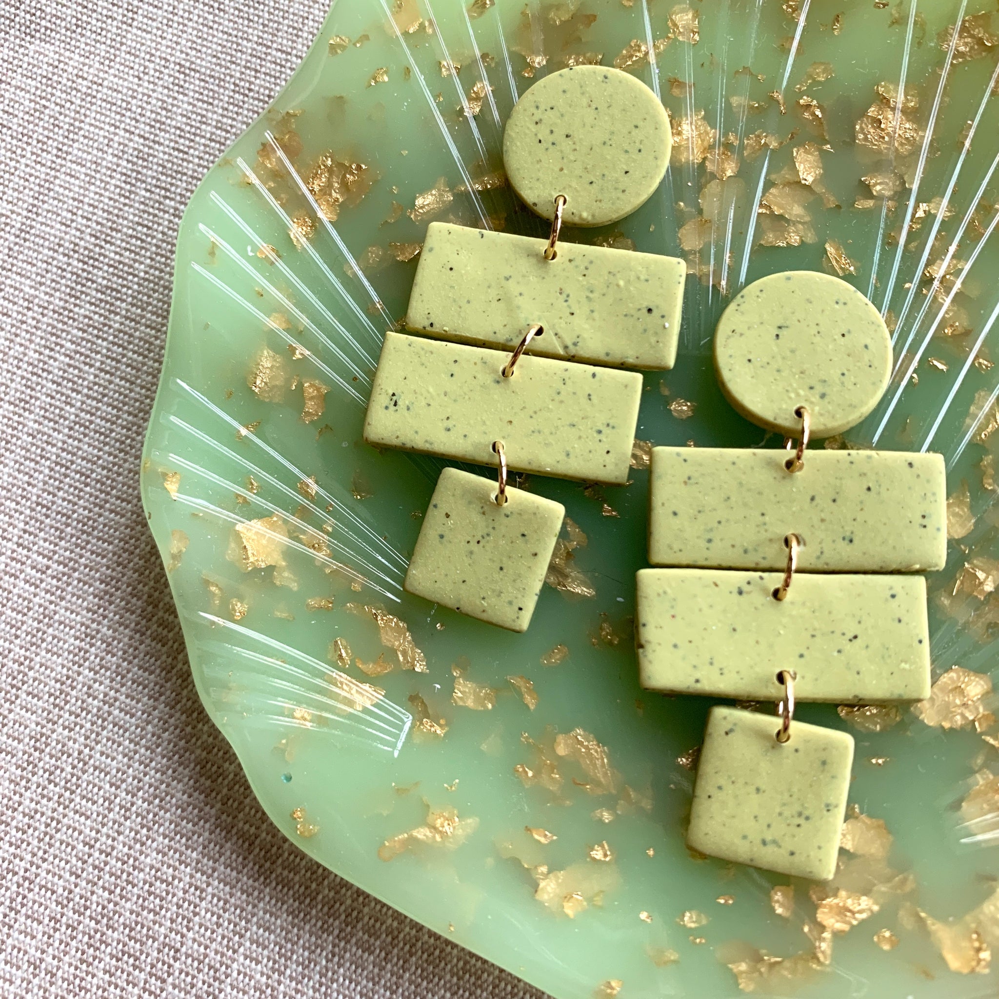 All earrings are handmade in very small batches of polymer clay. They are lightweight, but not as durable as metal or plastic, so please handle with care. Every piece is cut, sanded, buffed, and assembled with love by us. Due to the nature of handmade pieces, there may be slight variations or imperfections; no two pieces are 100% alike! Also please note the color of earrings may slightly differ due to computer monitor settings.